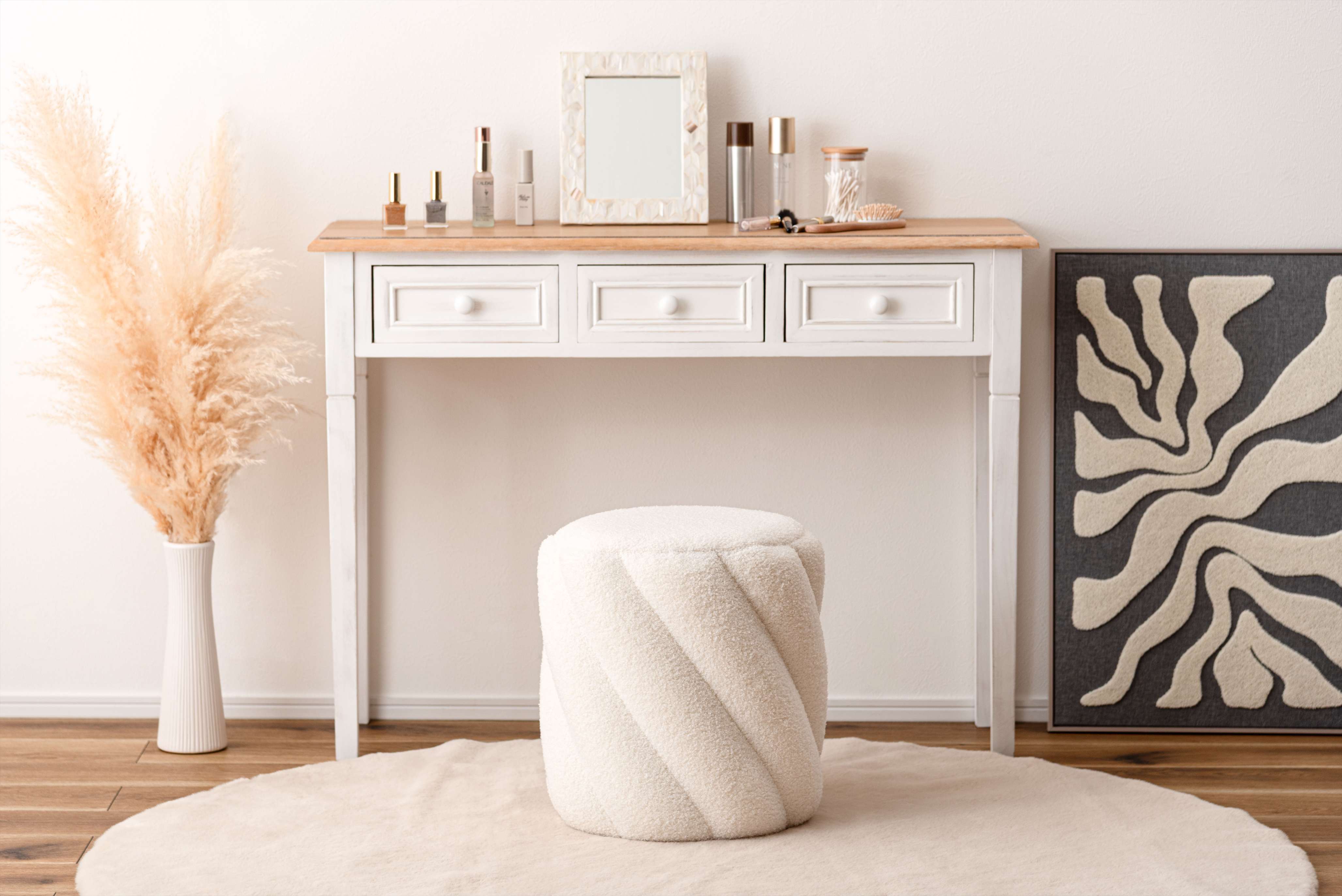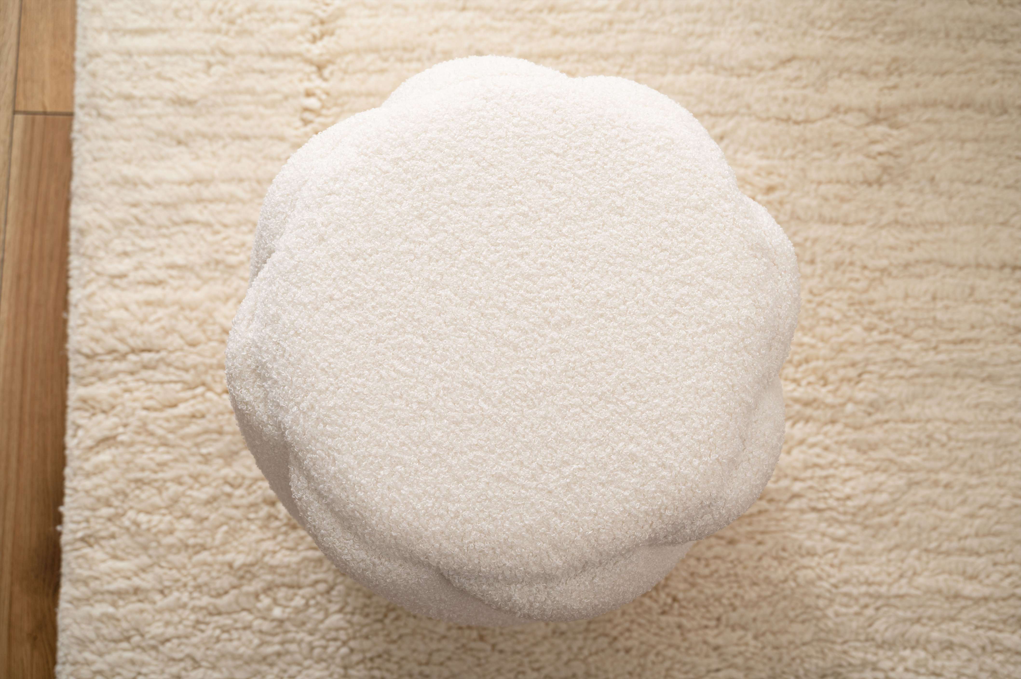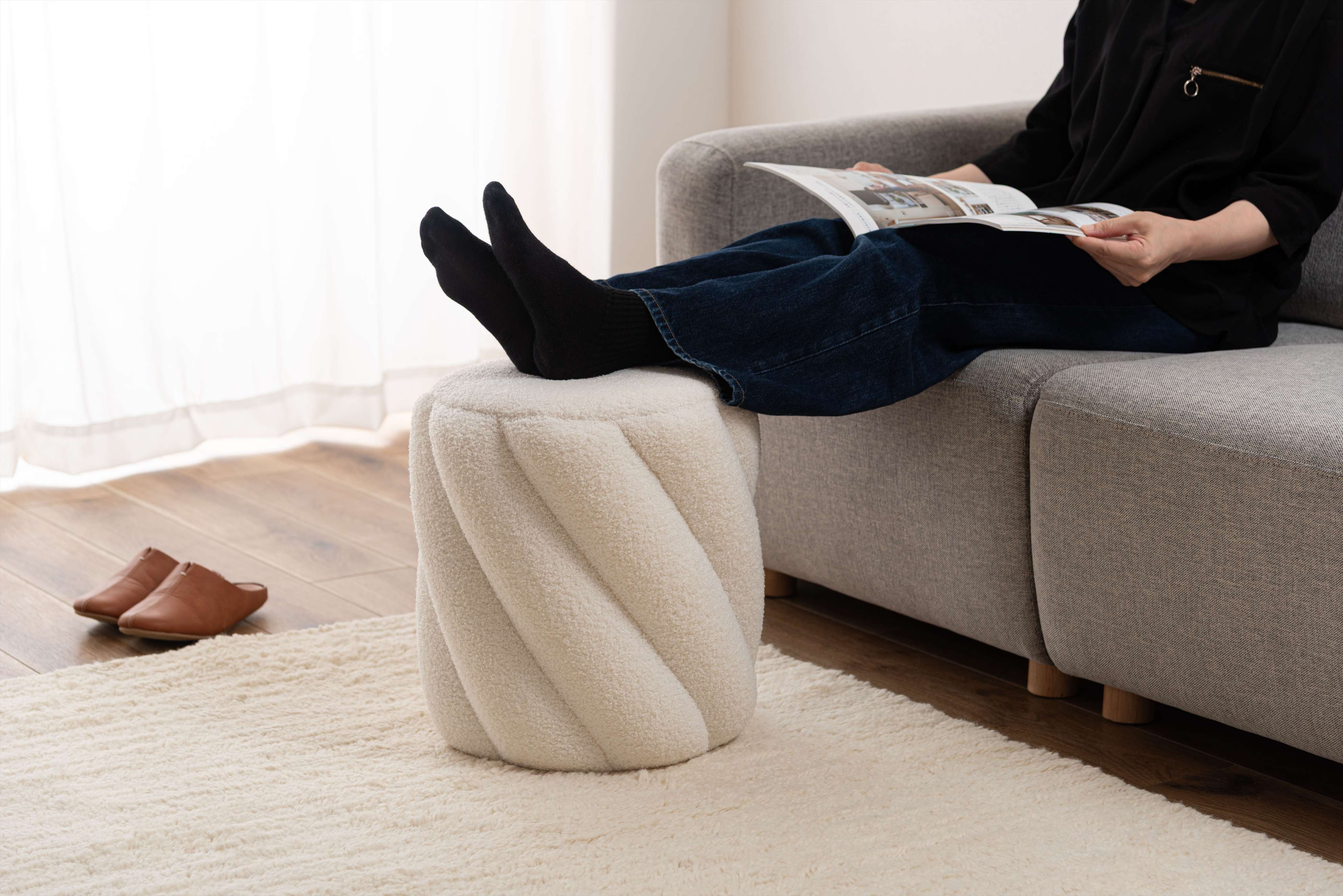 ふんわりタッチのもこもこ生地がぬくもりを感じさせるデザインスツール。