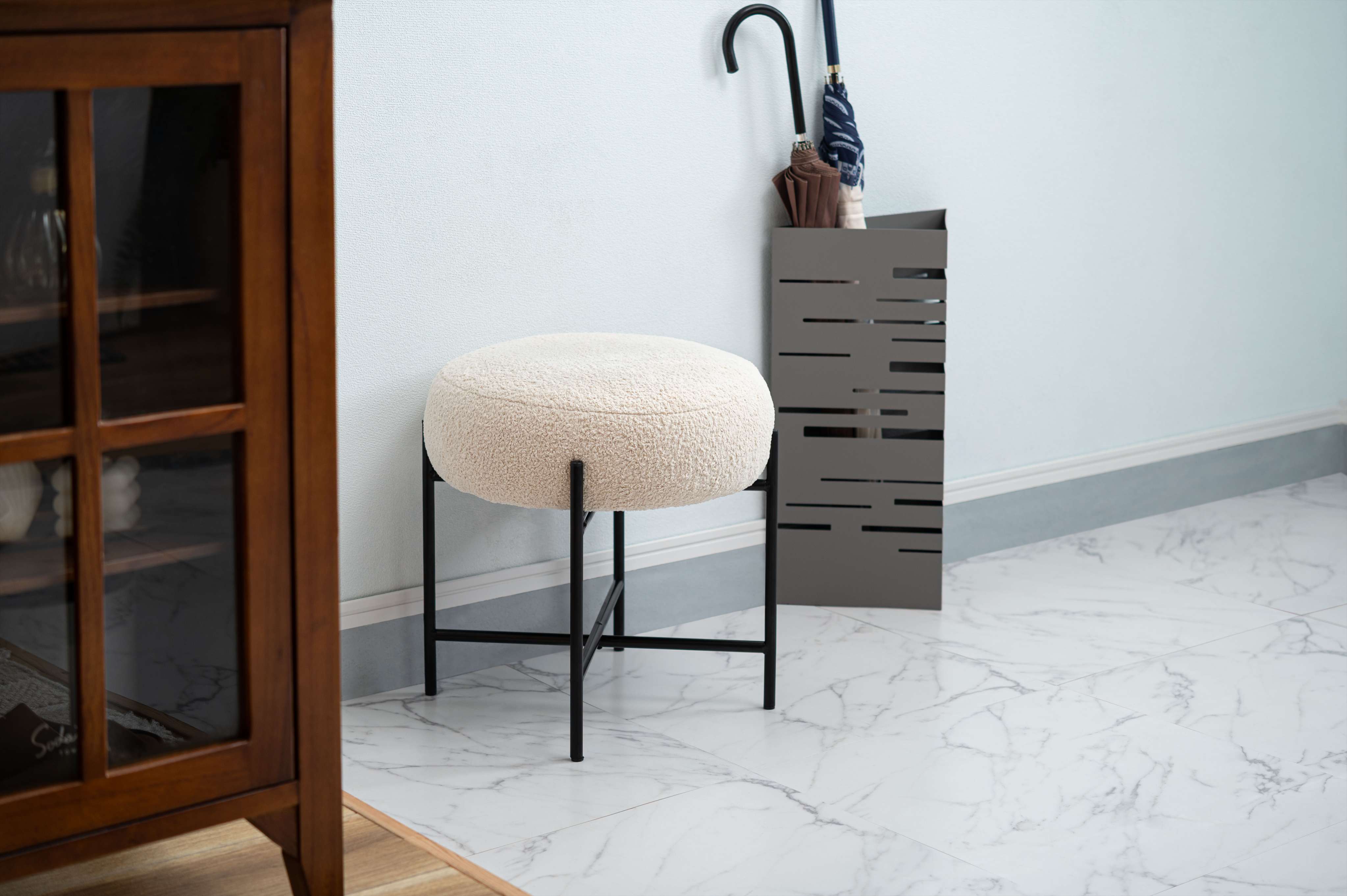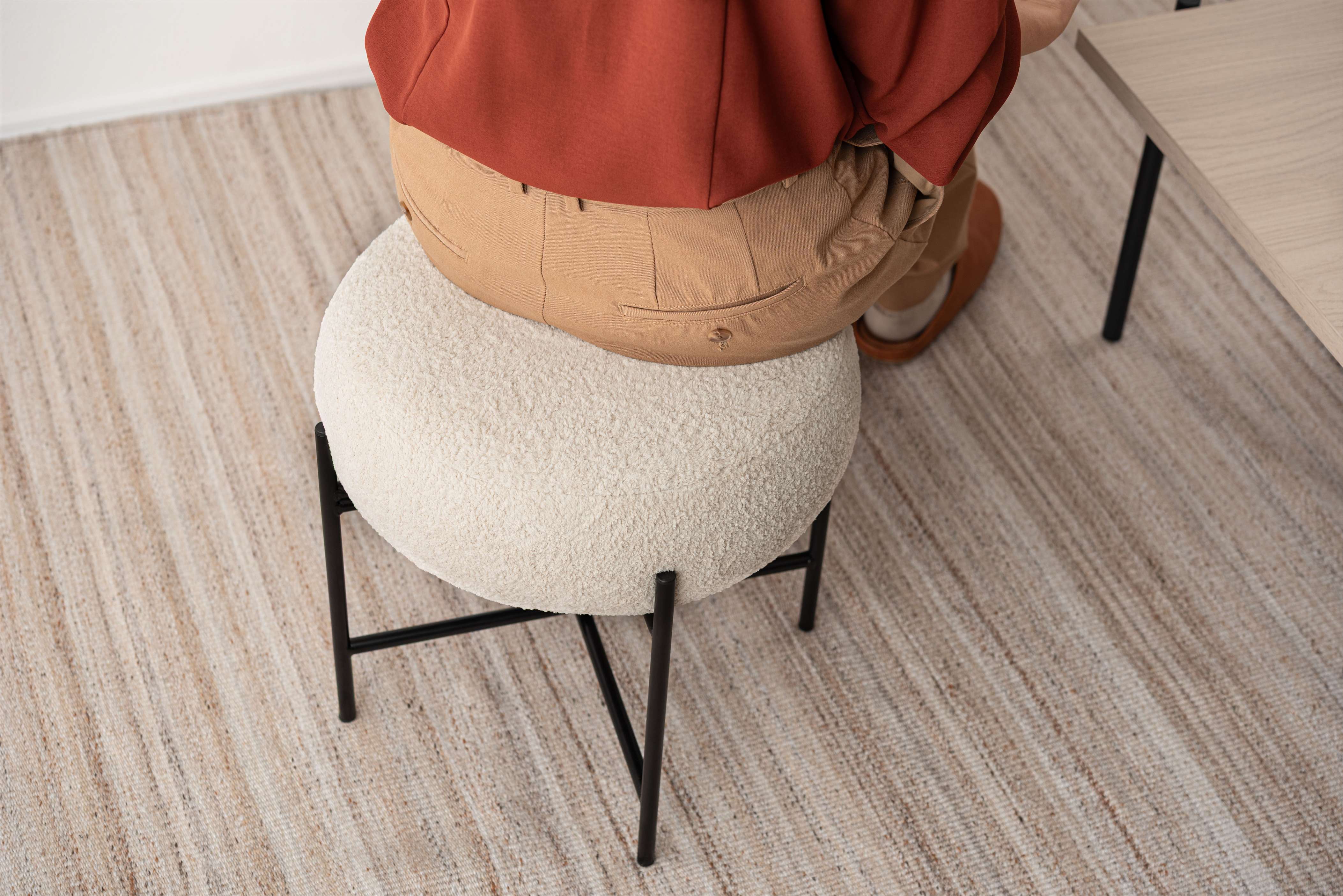 きのこのようなぽっこりとした形に細身なスチール脚が目を引くデザインスツール。