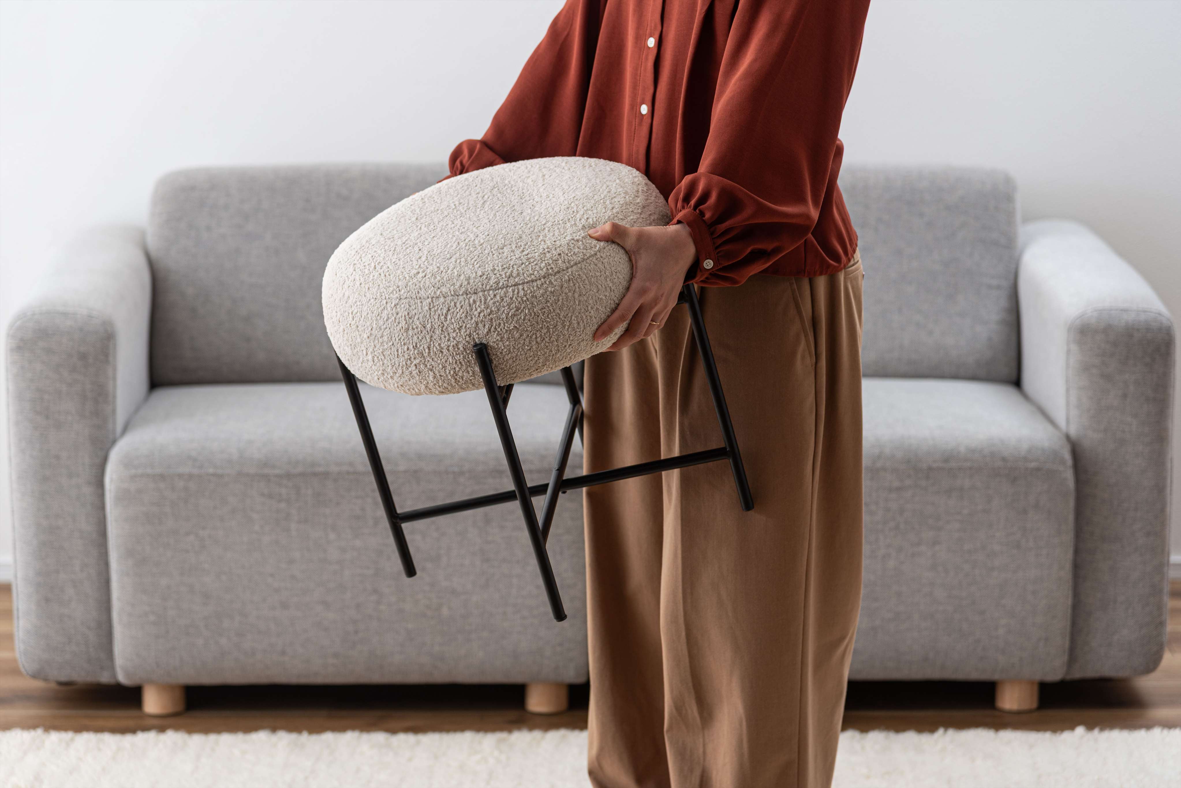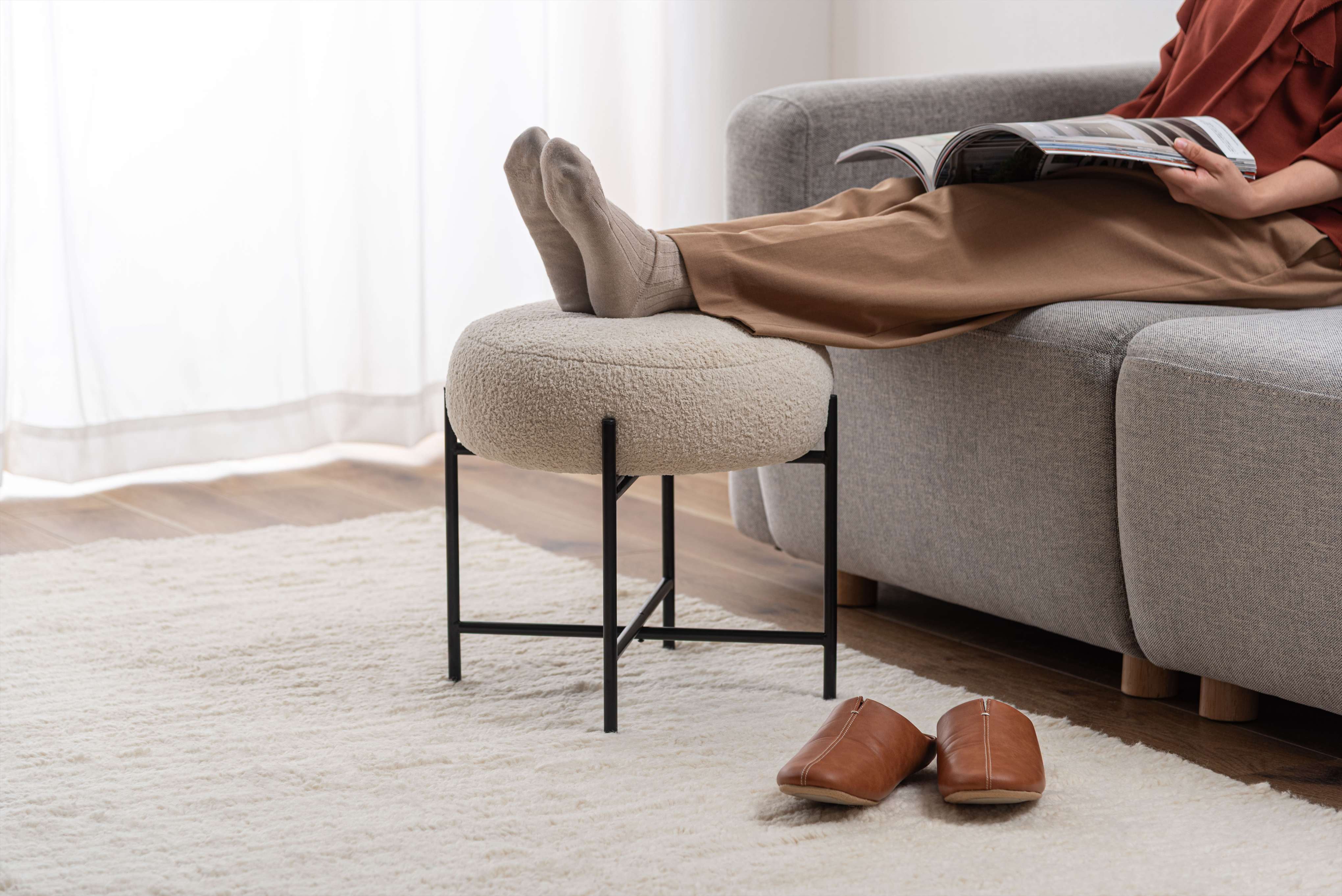 座るだけでなくソファと合わせてオットマンのように使えたり、玄関先のちょこんとスツールにも◎!