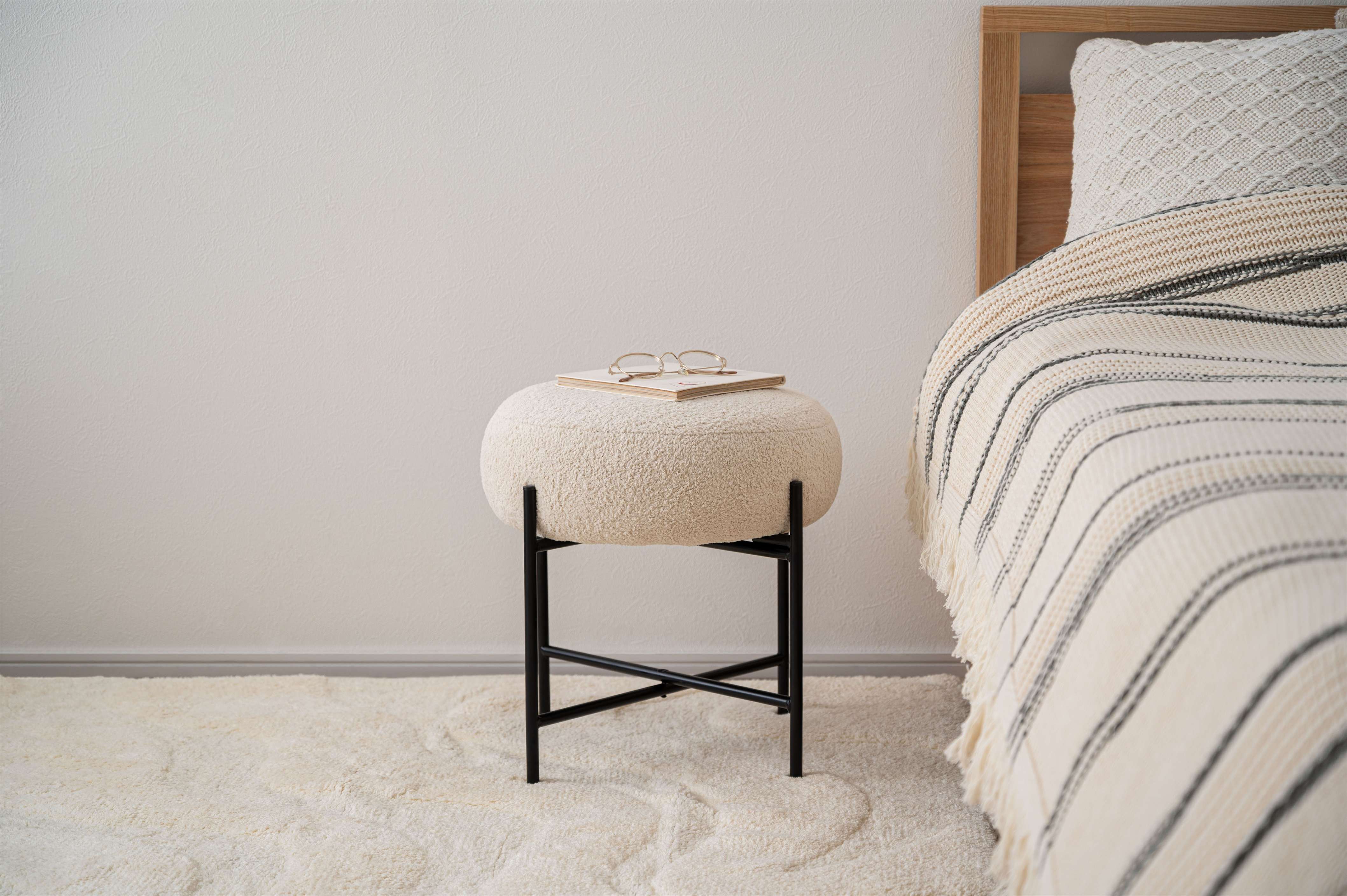 マットな質感のブラックスチールと、落ち着いた色味のもこもこの生地感が可愛くマッチ♪