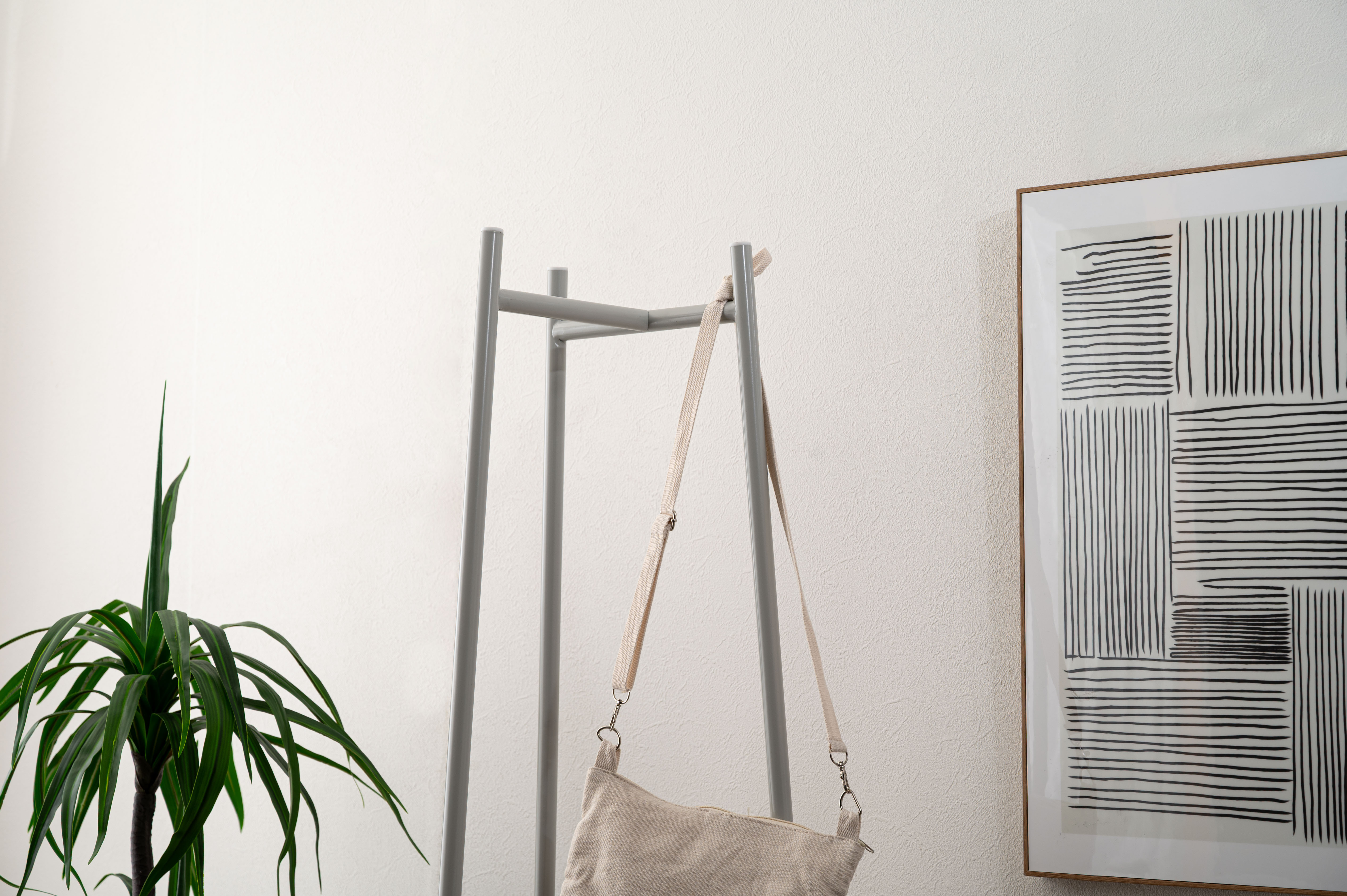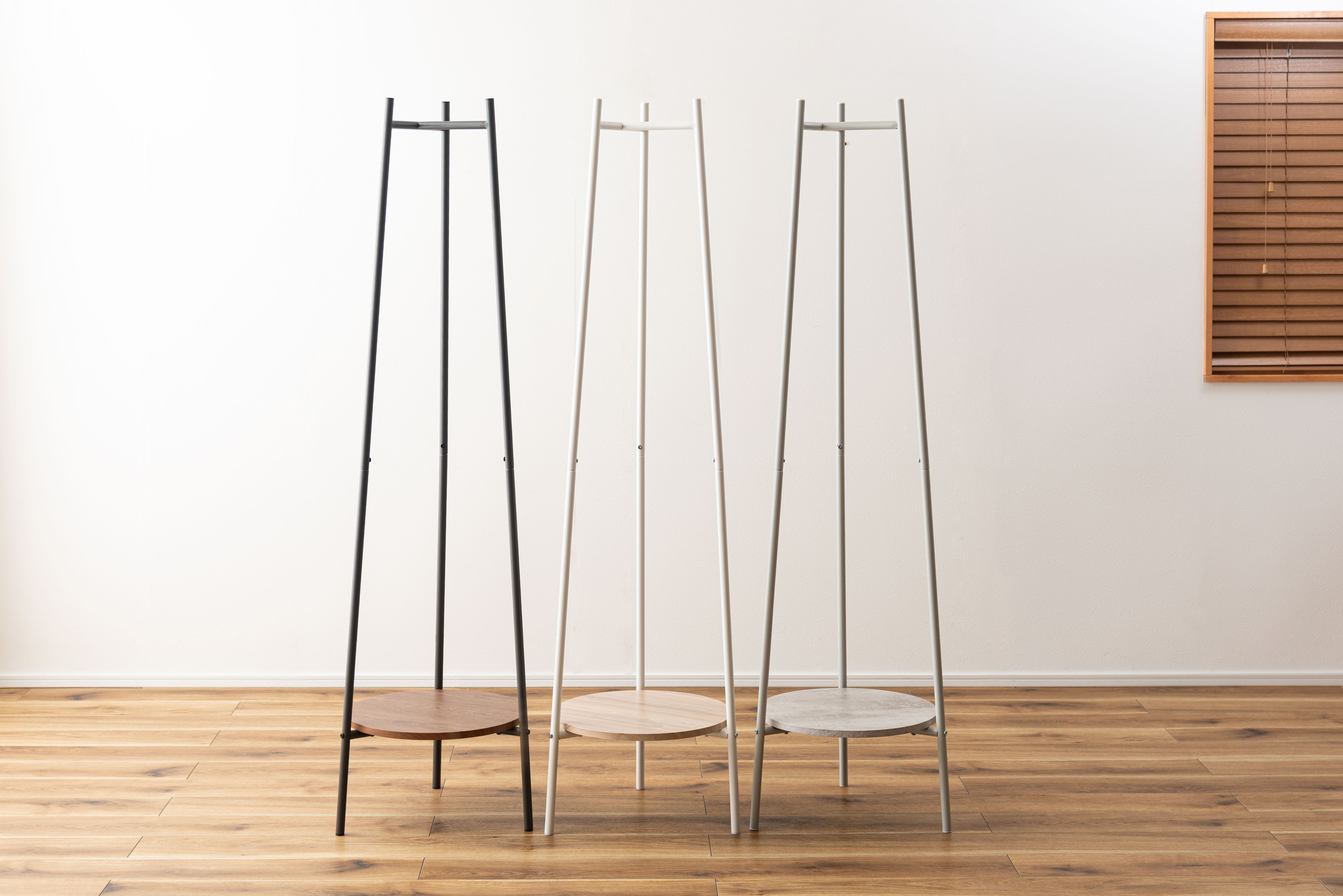 3本のスチール脚で支えるミニマルな構造が特徴のハンガー。