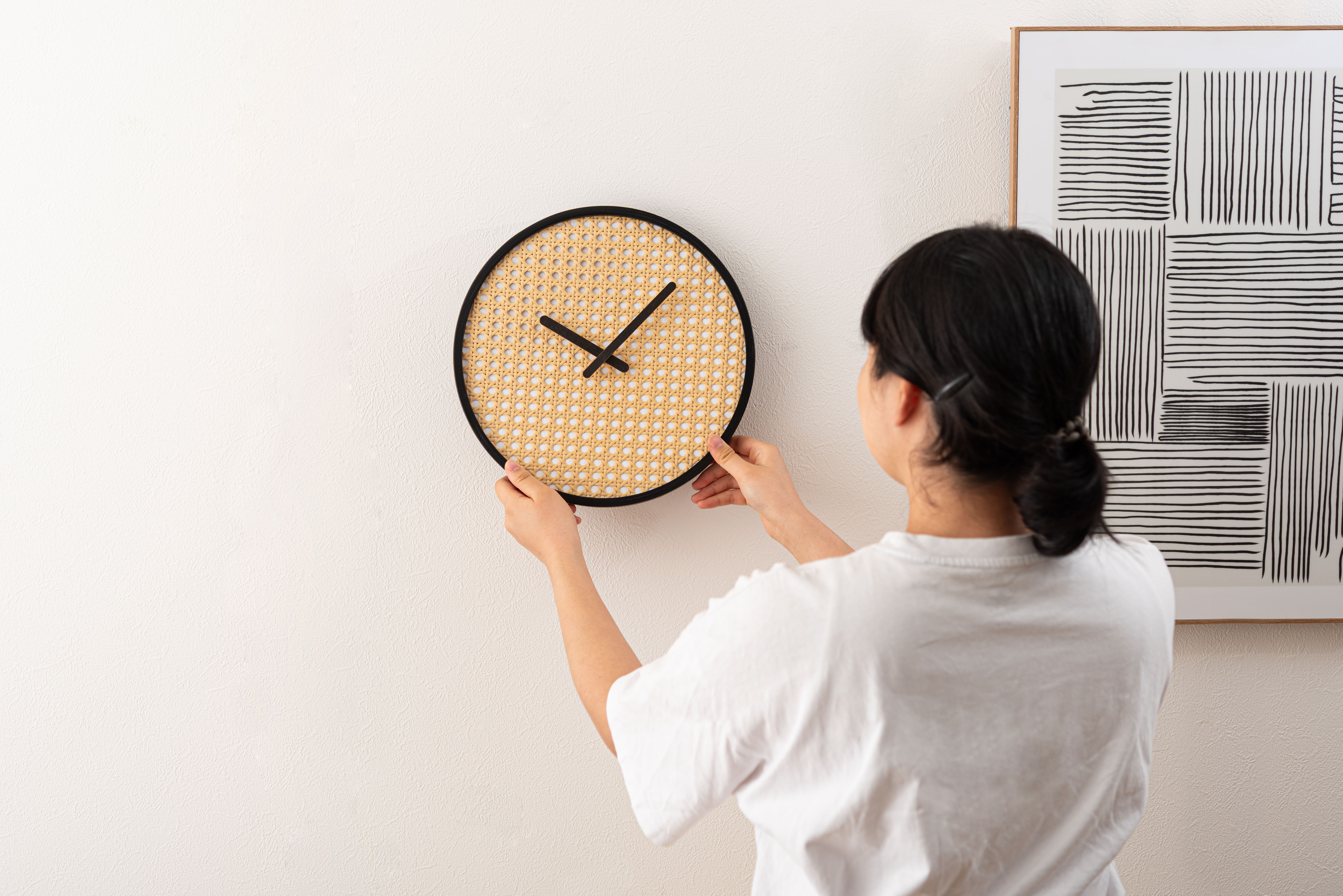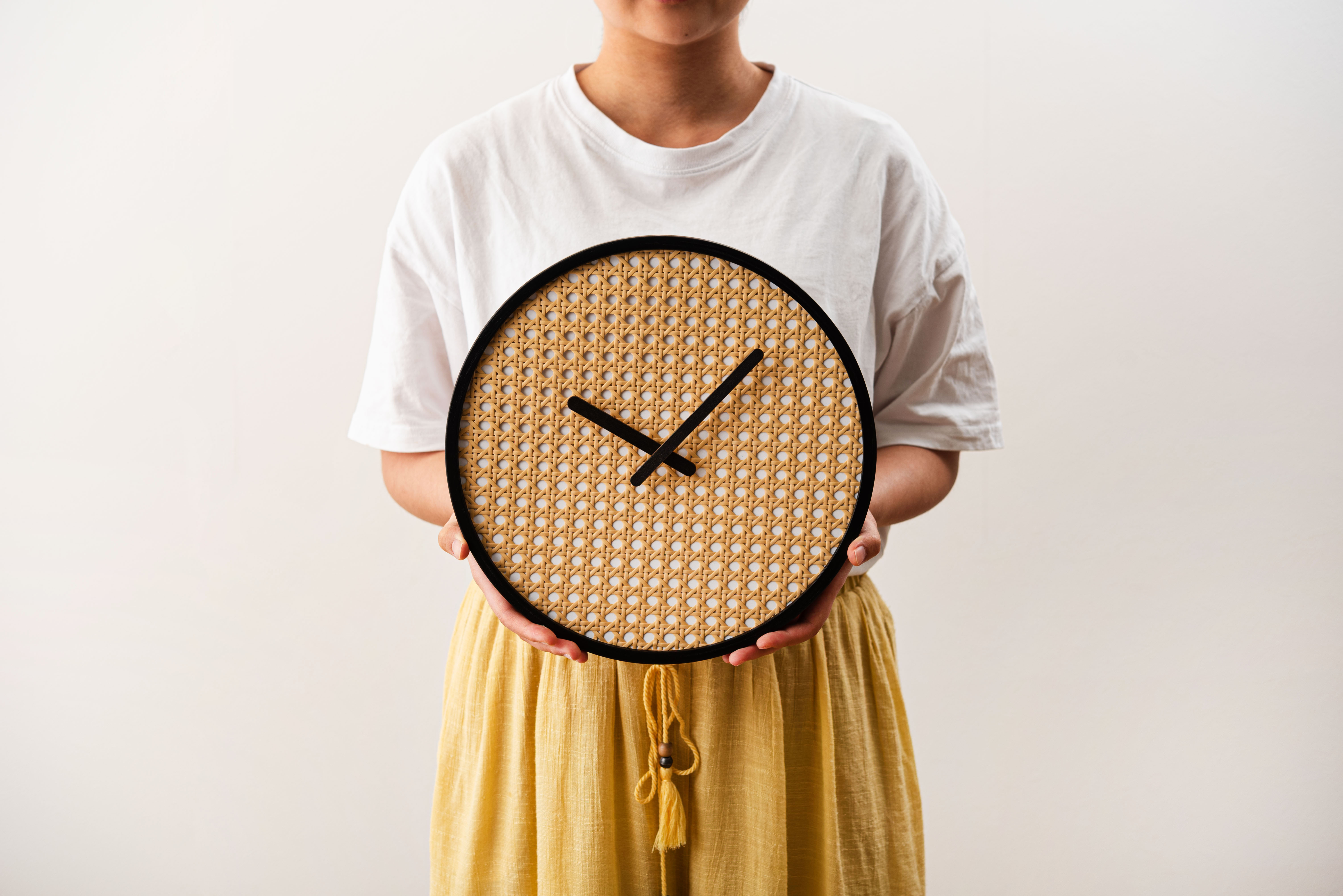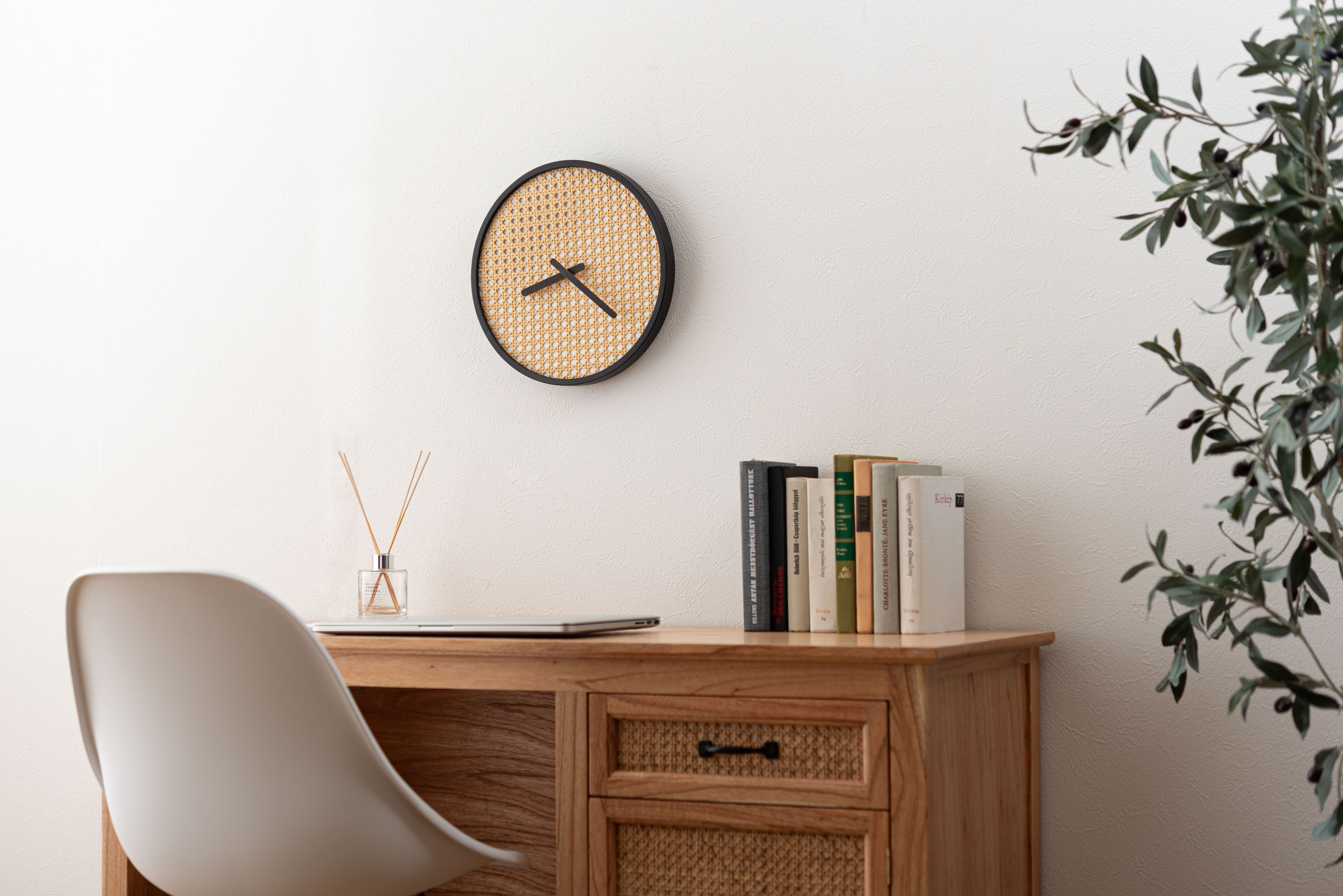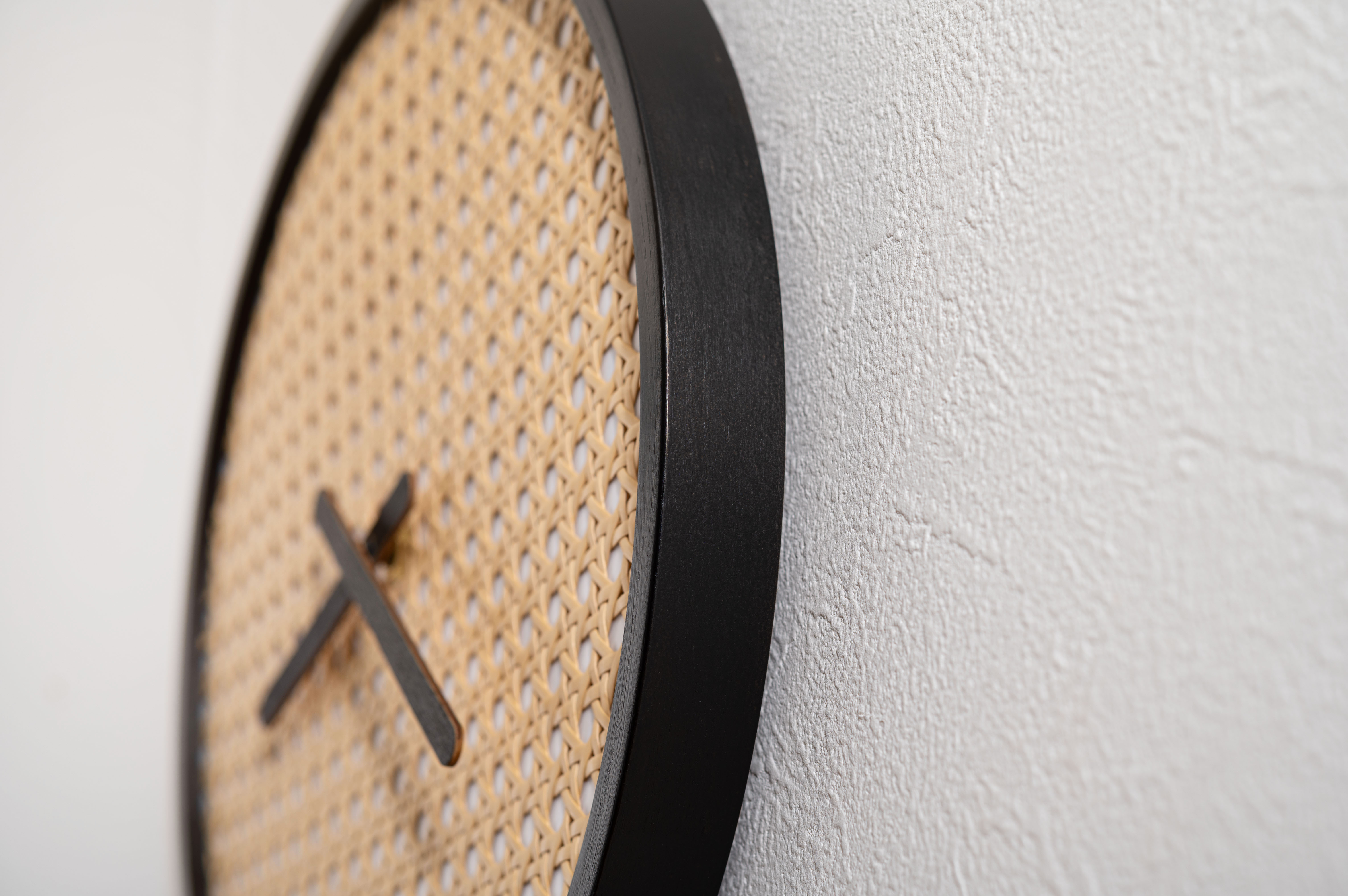 やさしい風合いのラタン調が持つ美しさを活かしたウォールクロック。