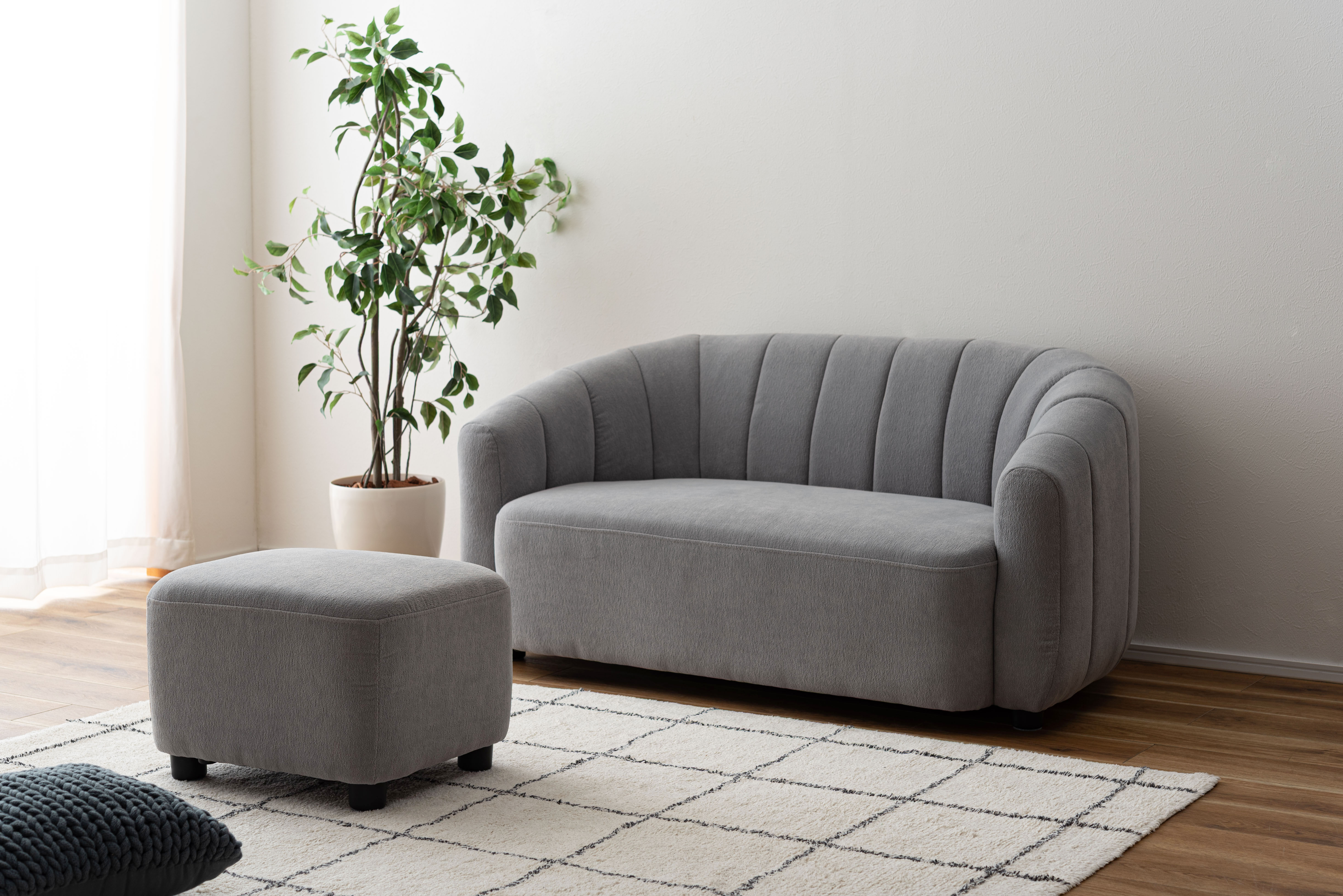 くつろぎ感を兼ね備え、丸みを帯びたフォルムが上品なソファ&オットマン。