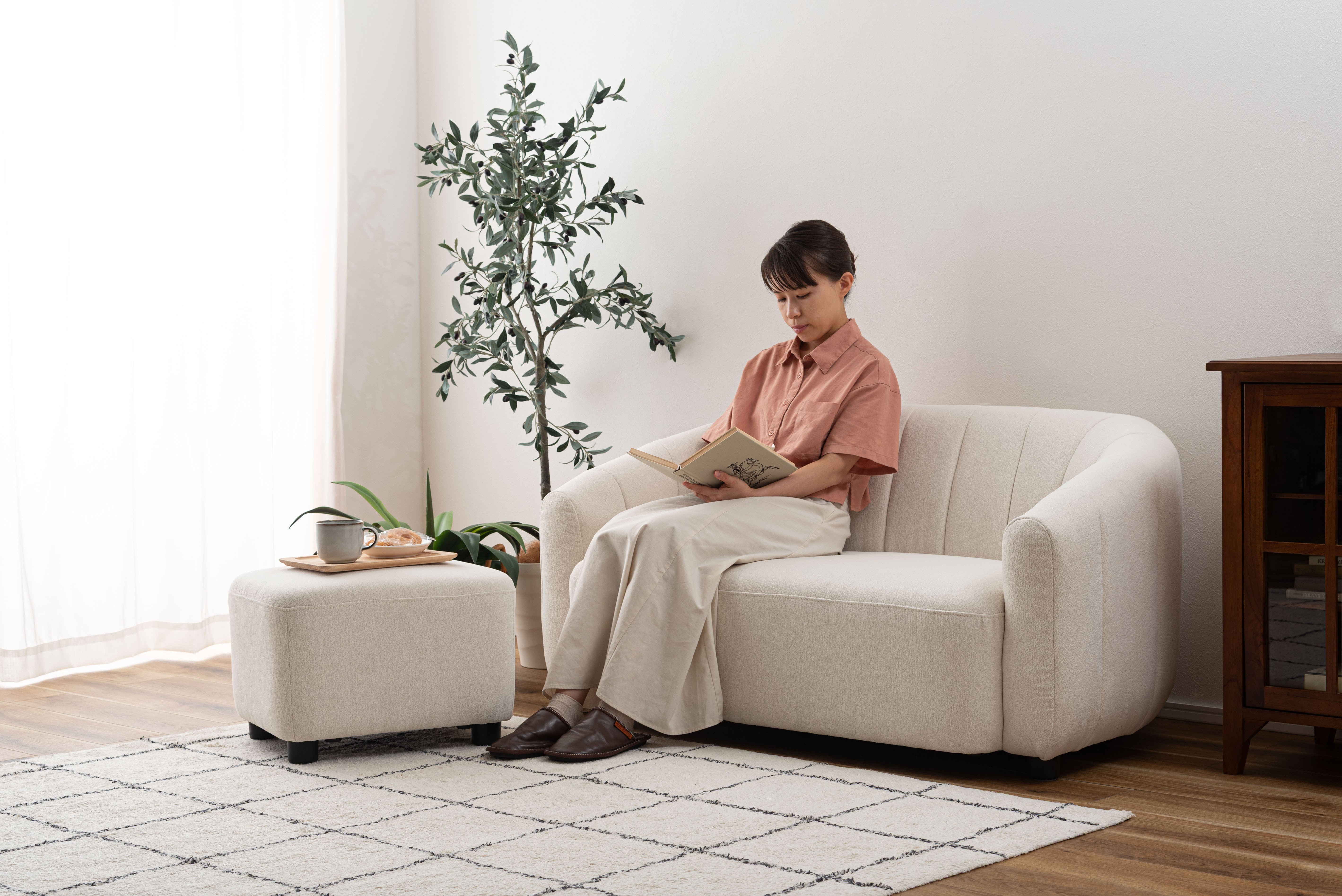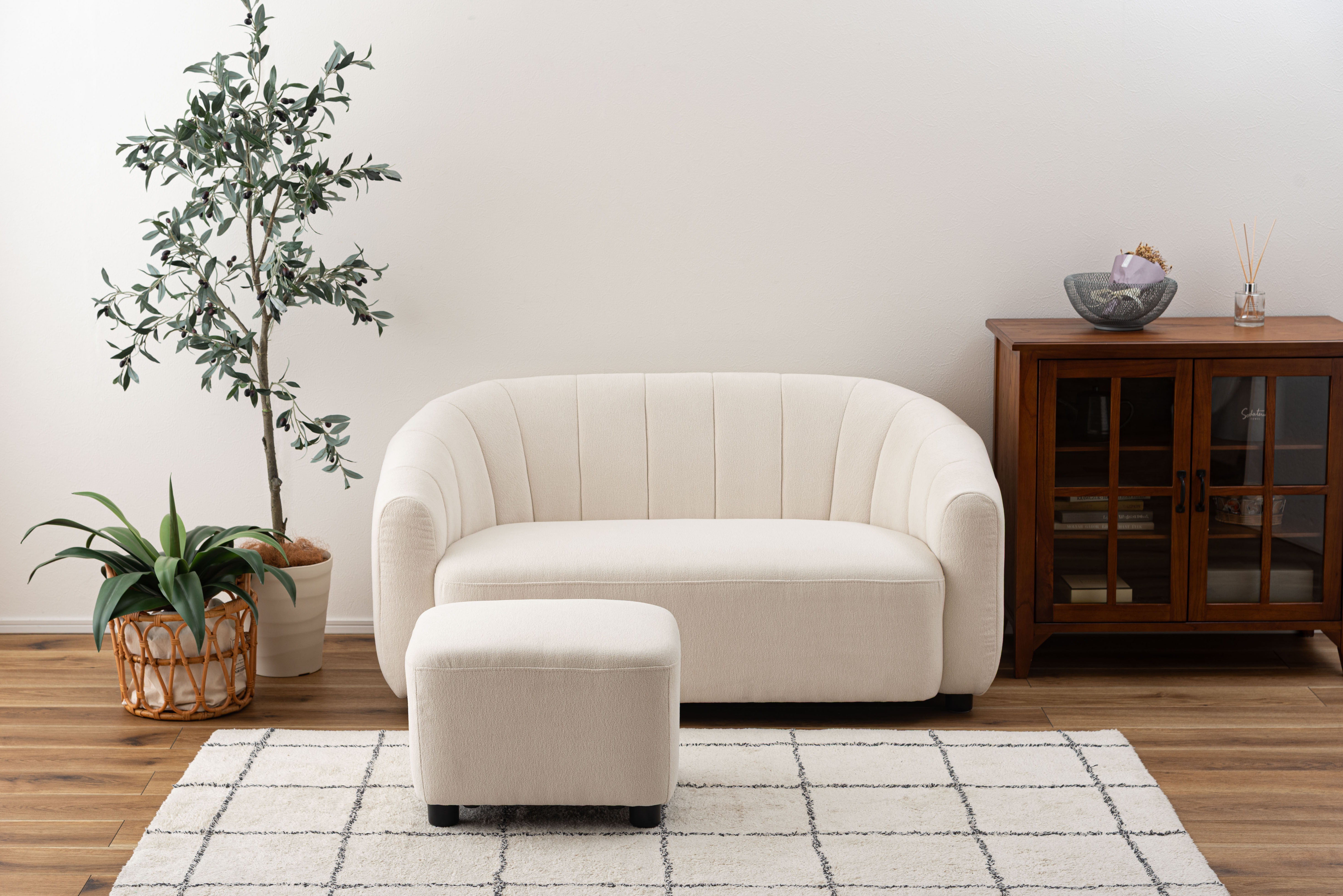 くつろぎ感を兼ね備え、丸みを帯びたフォルムが上品なソファ&オットマン。
