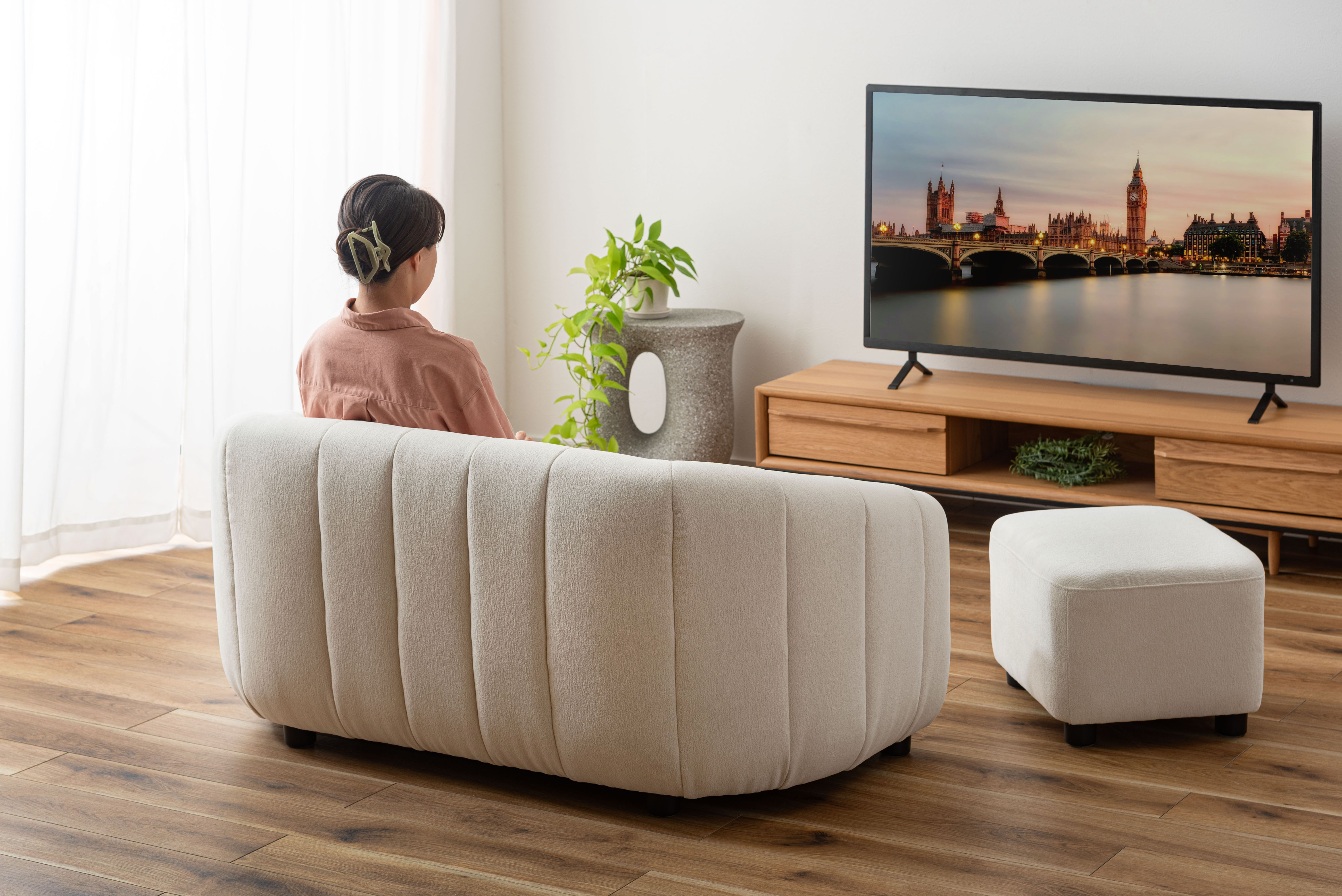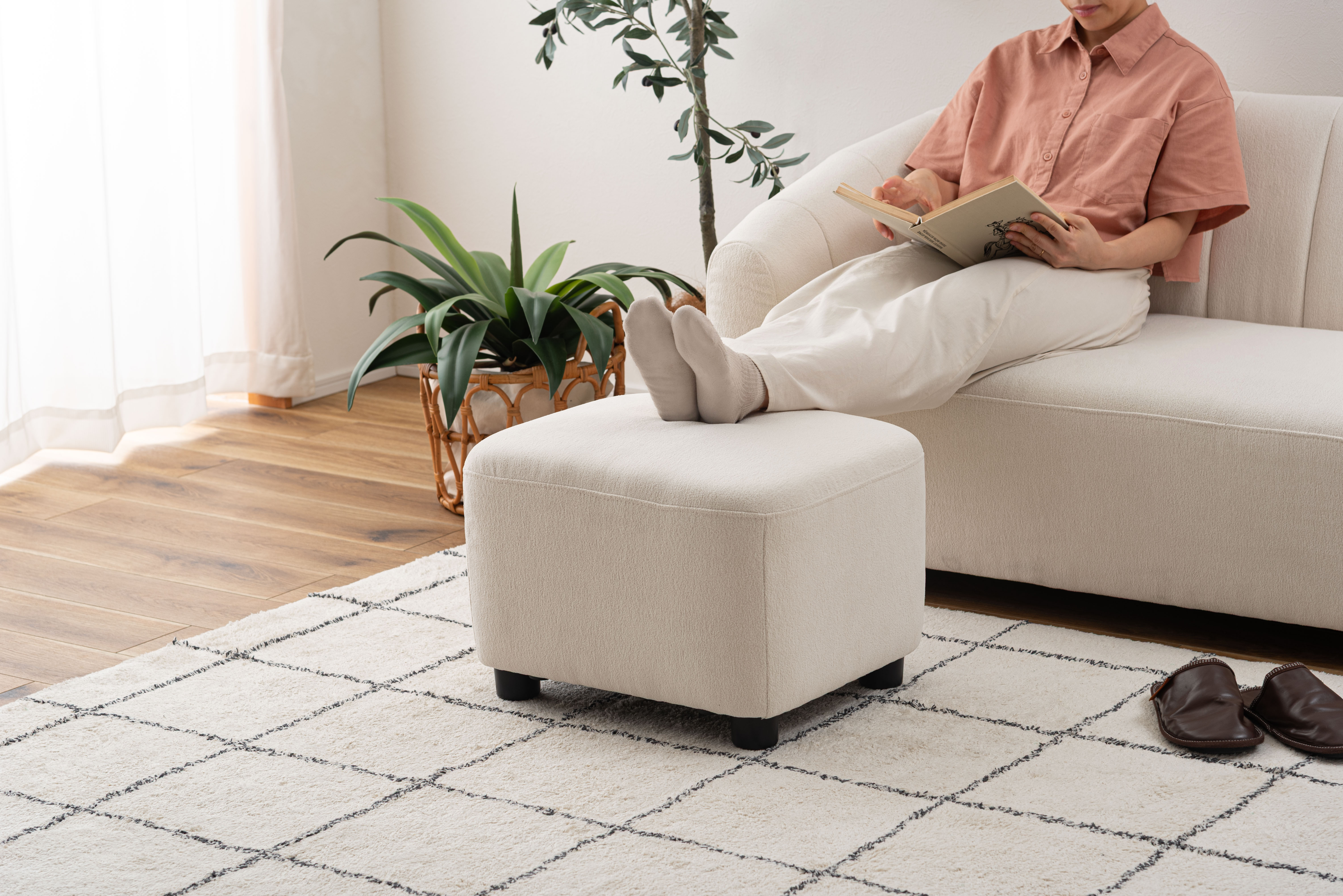ソファと同じ素材のオットマンはスツールとしても活用でき、シーンに応じて使い分けができます。