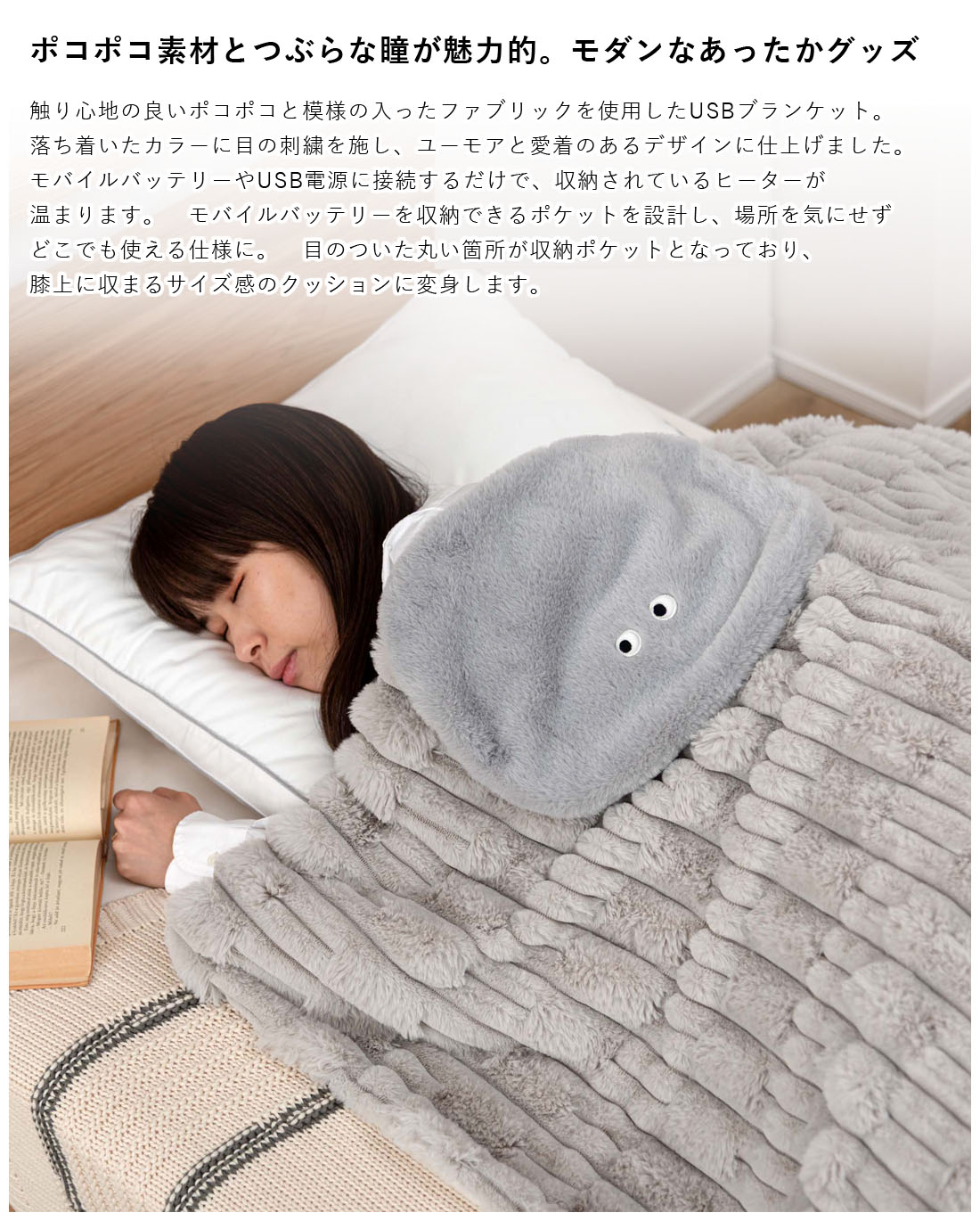 ポコポコ素材とつぶらな瞳が可愛いUSBブランケットです♪