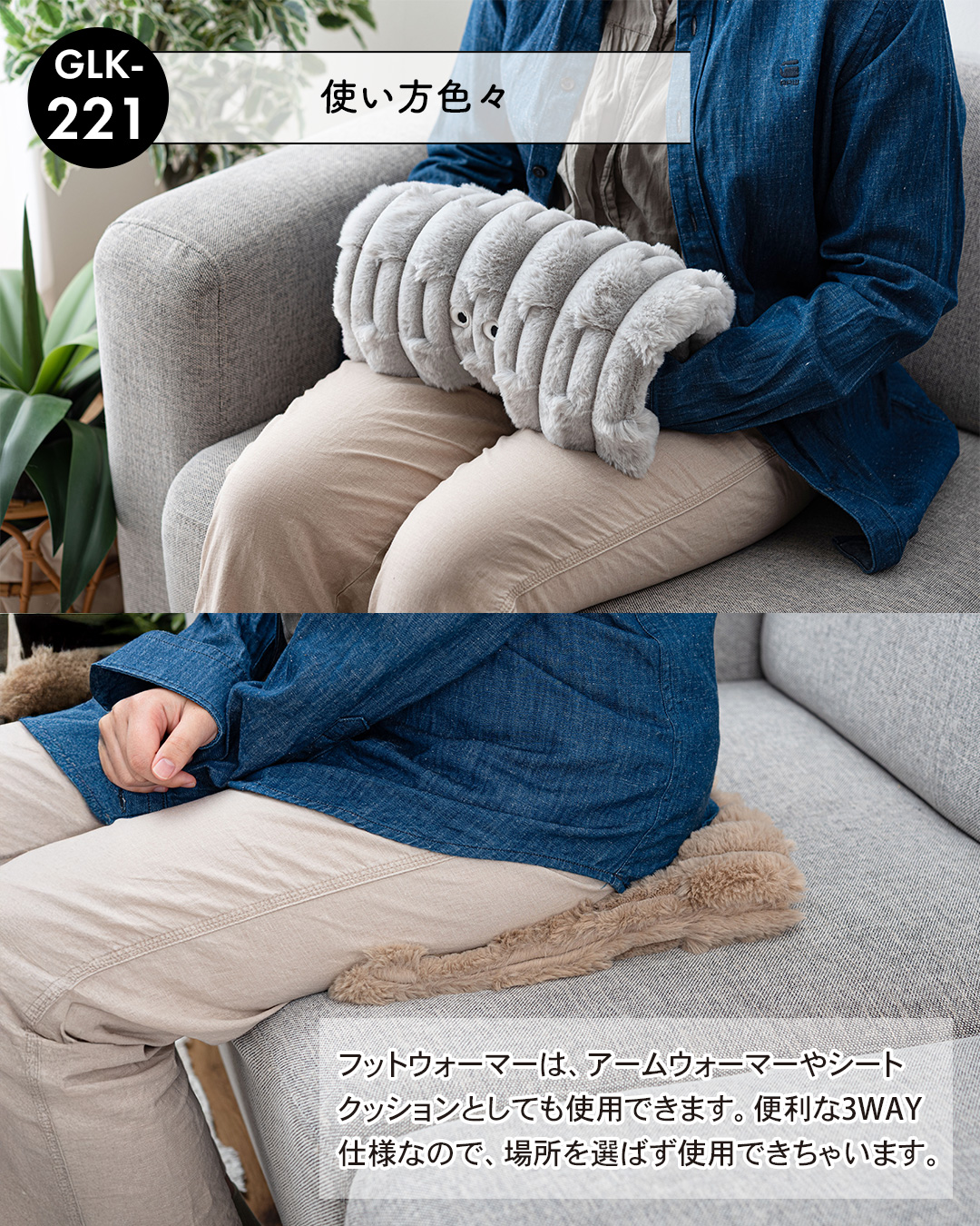 フットウォーマー・アームウォーマー以外にもオシリに敷けばあったかシートクッションにも大変身!
