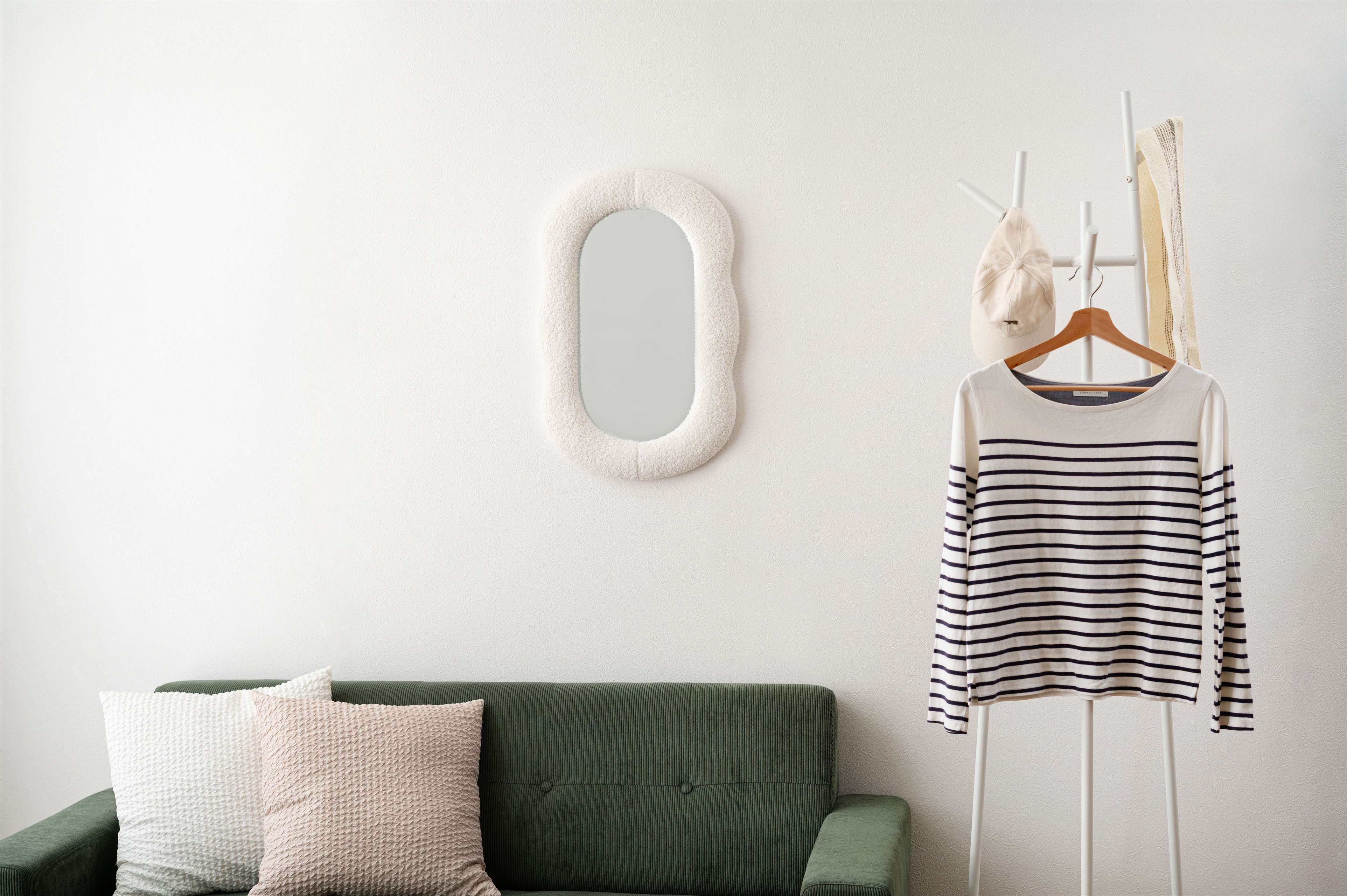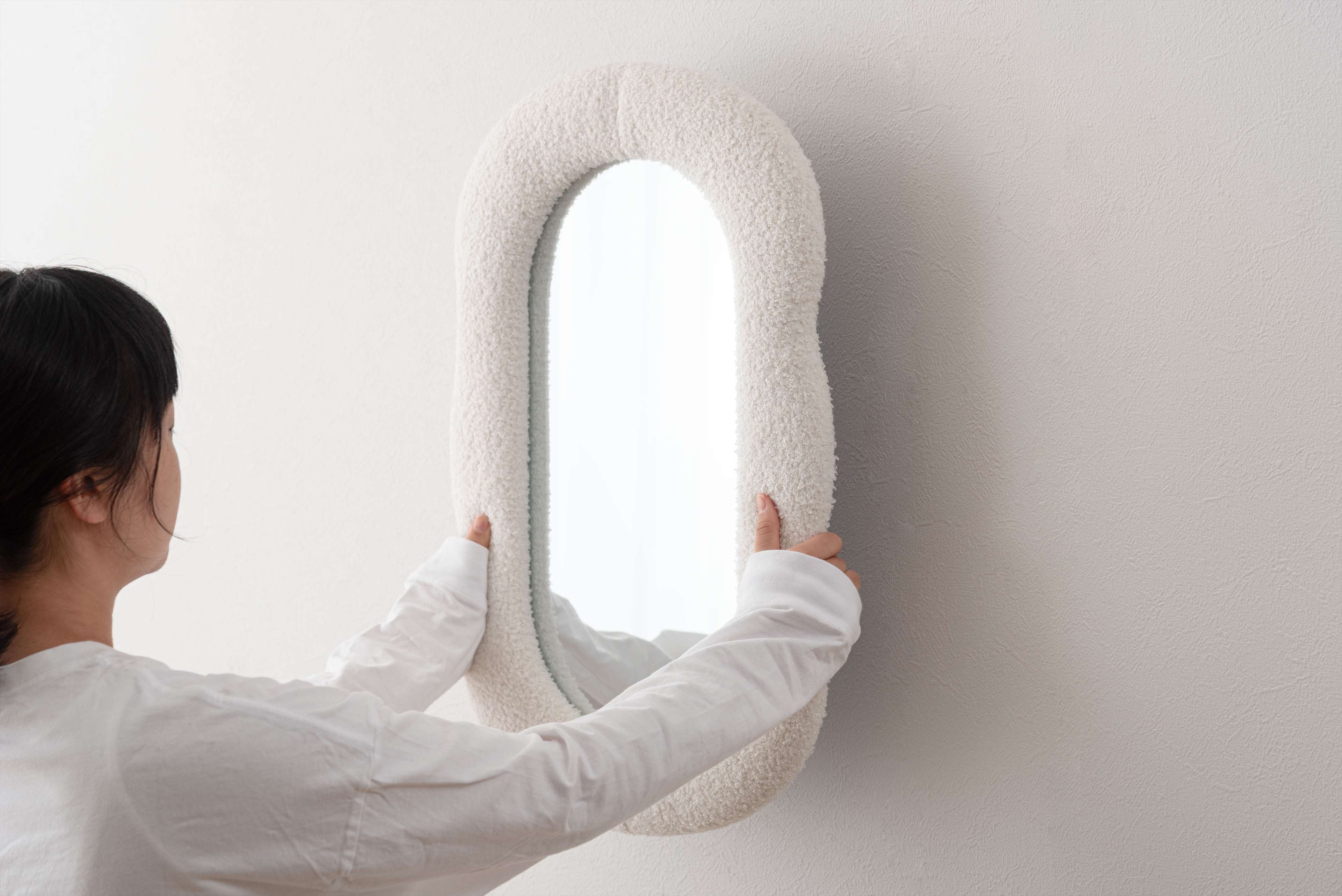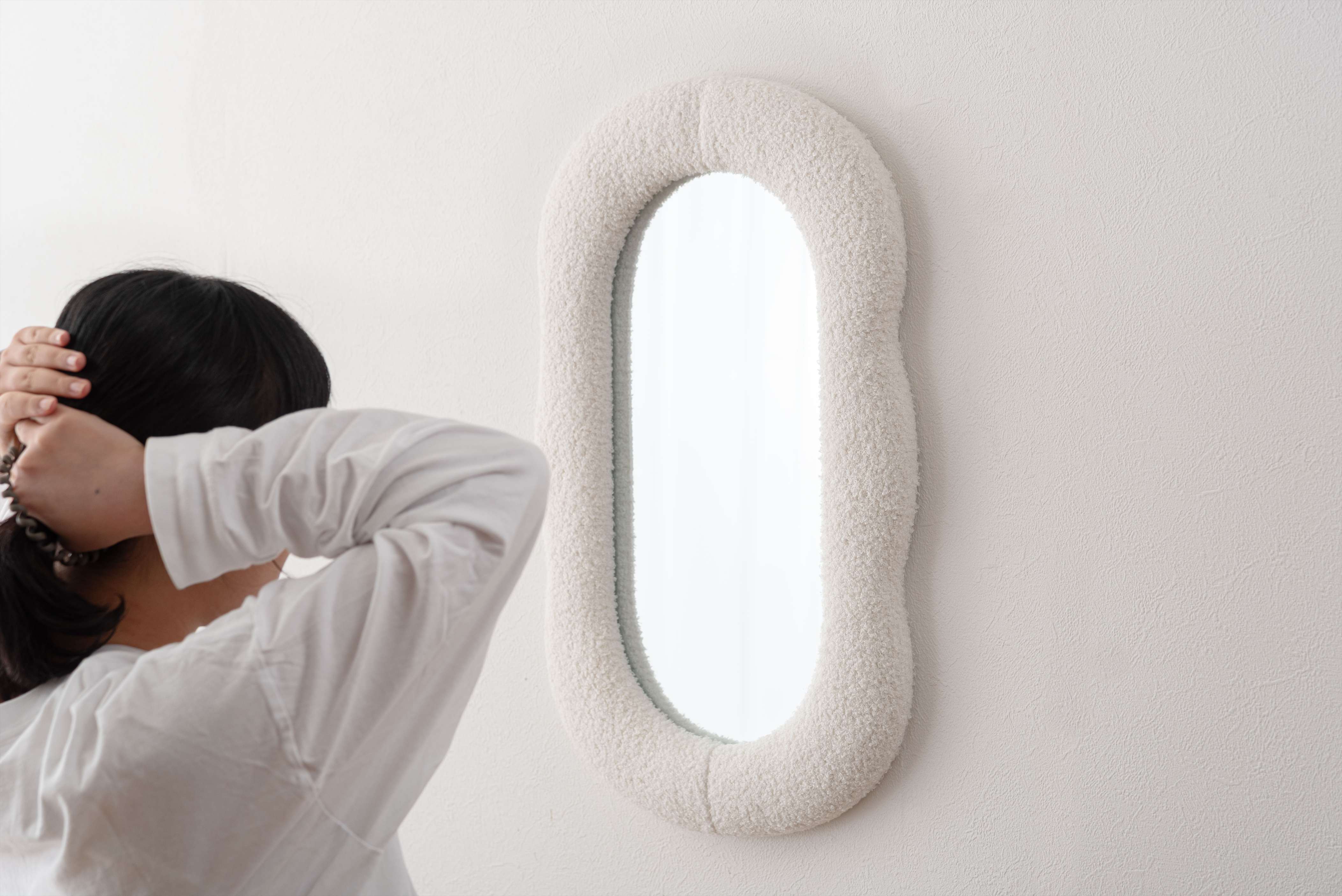 くすみカラーのもこもことした生地が可愛らしいオシャレミラー。