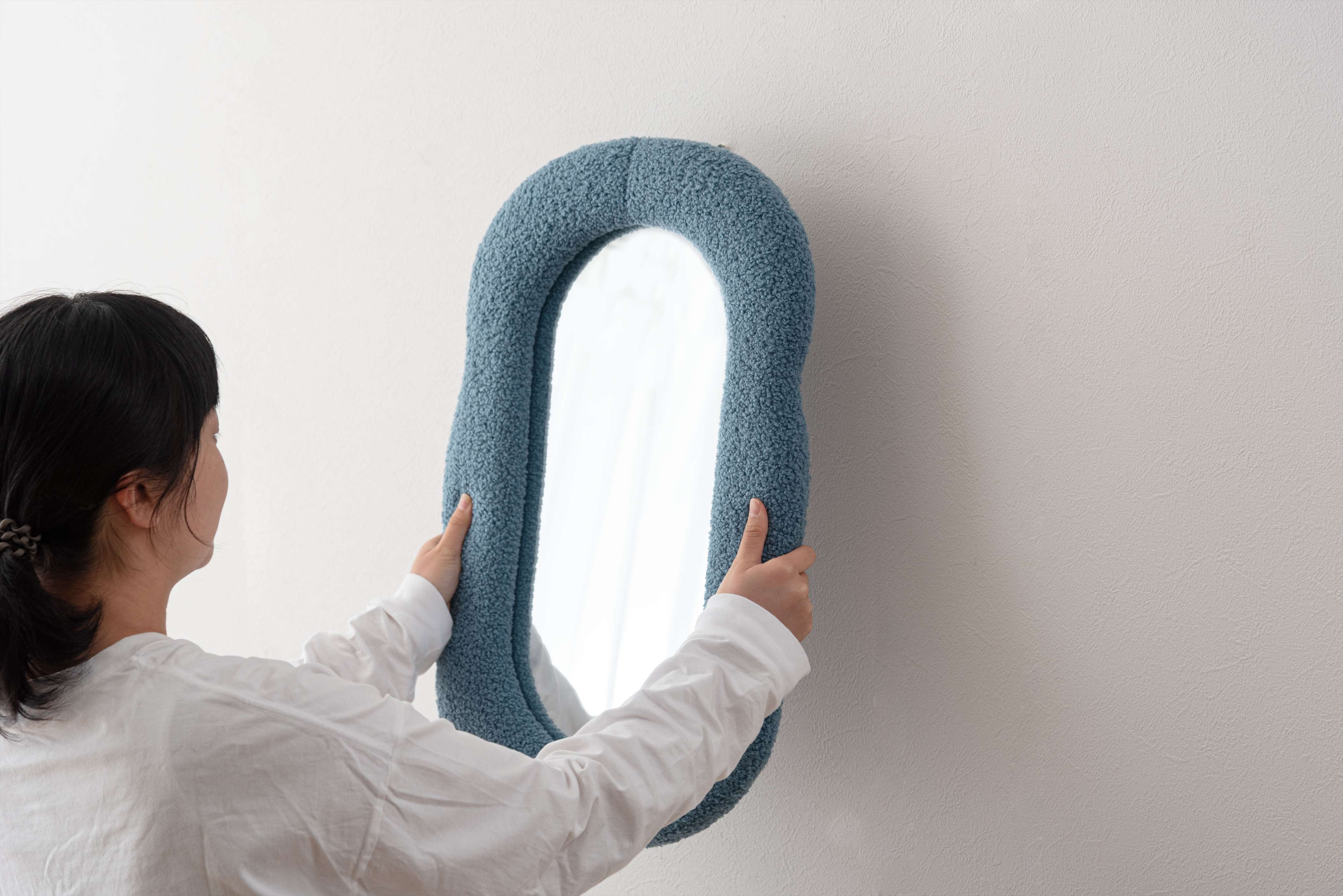 くすみカラーのもこもことした生地が可愛らしいオシャレミラー。