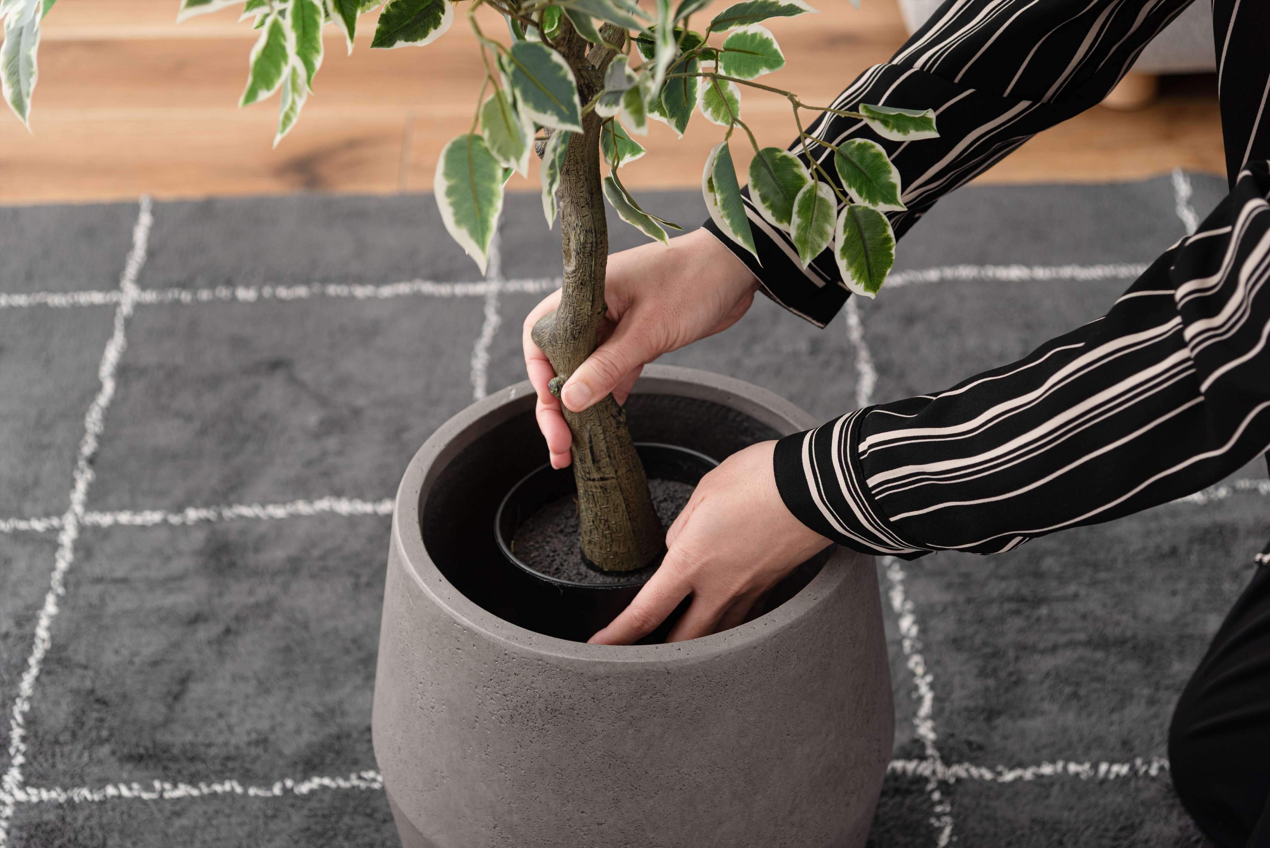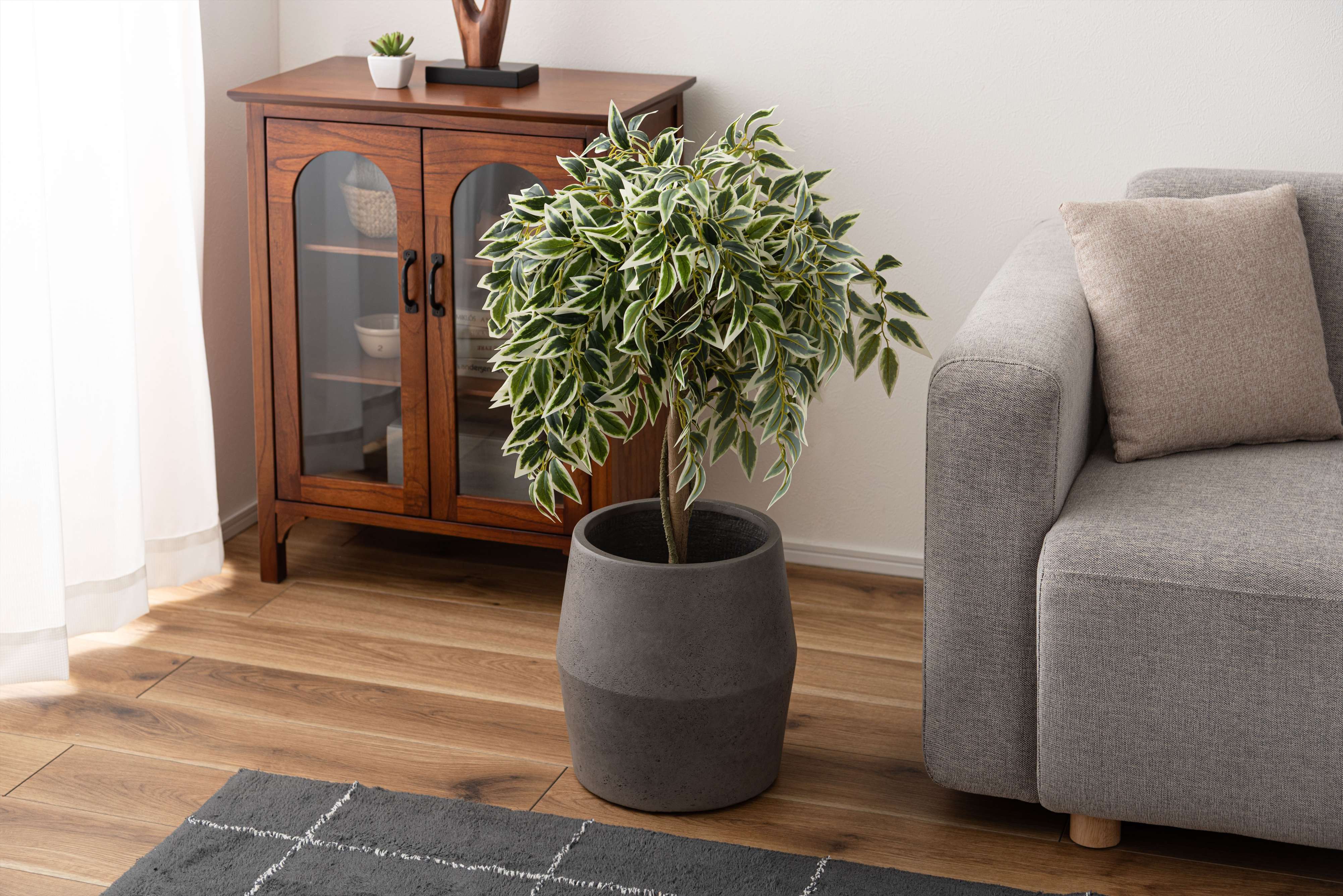 鉢植えのまま入れられる形状のため扱いやすく、置く場所によって表情の変化を楽しめます。