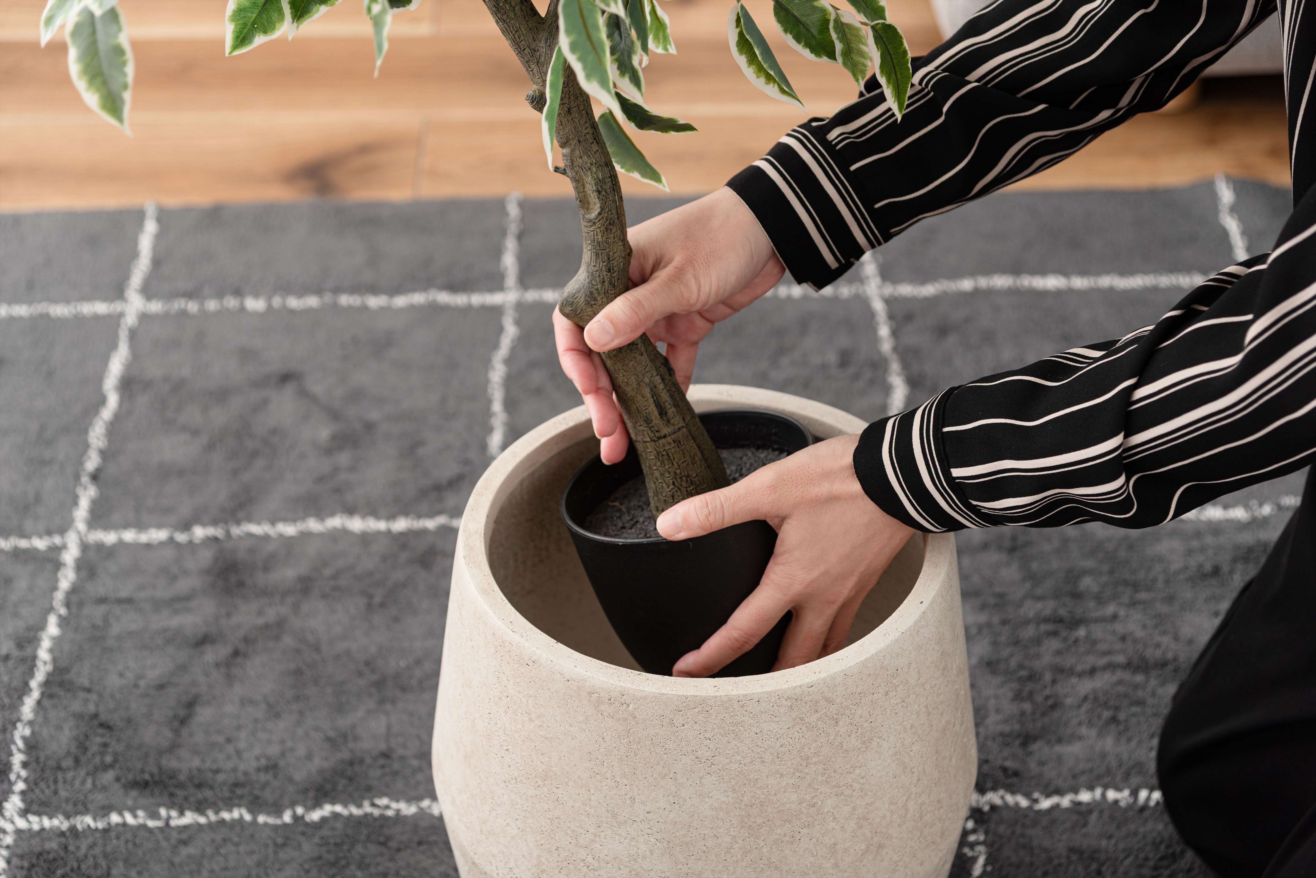 鉢植えのまま入れられる形状のため扱いやすく、置く場所によって表情の変化を楽しめます。