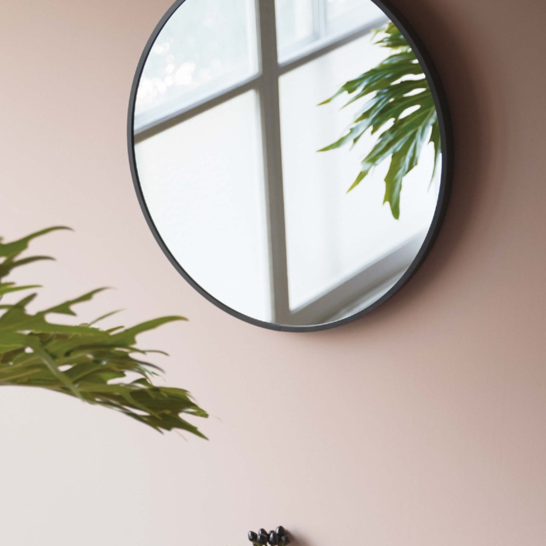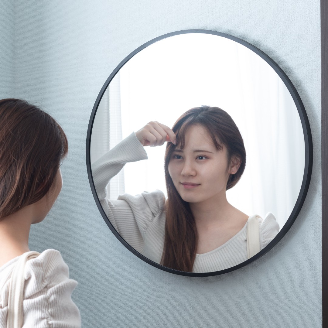 お部屋のポイントデザインにもなりそうなサークル型が美しい壁付けミラー。