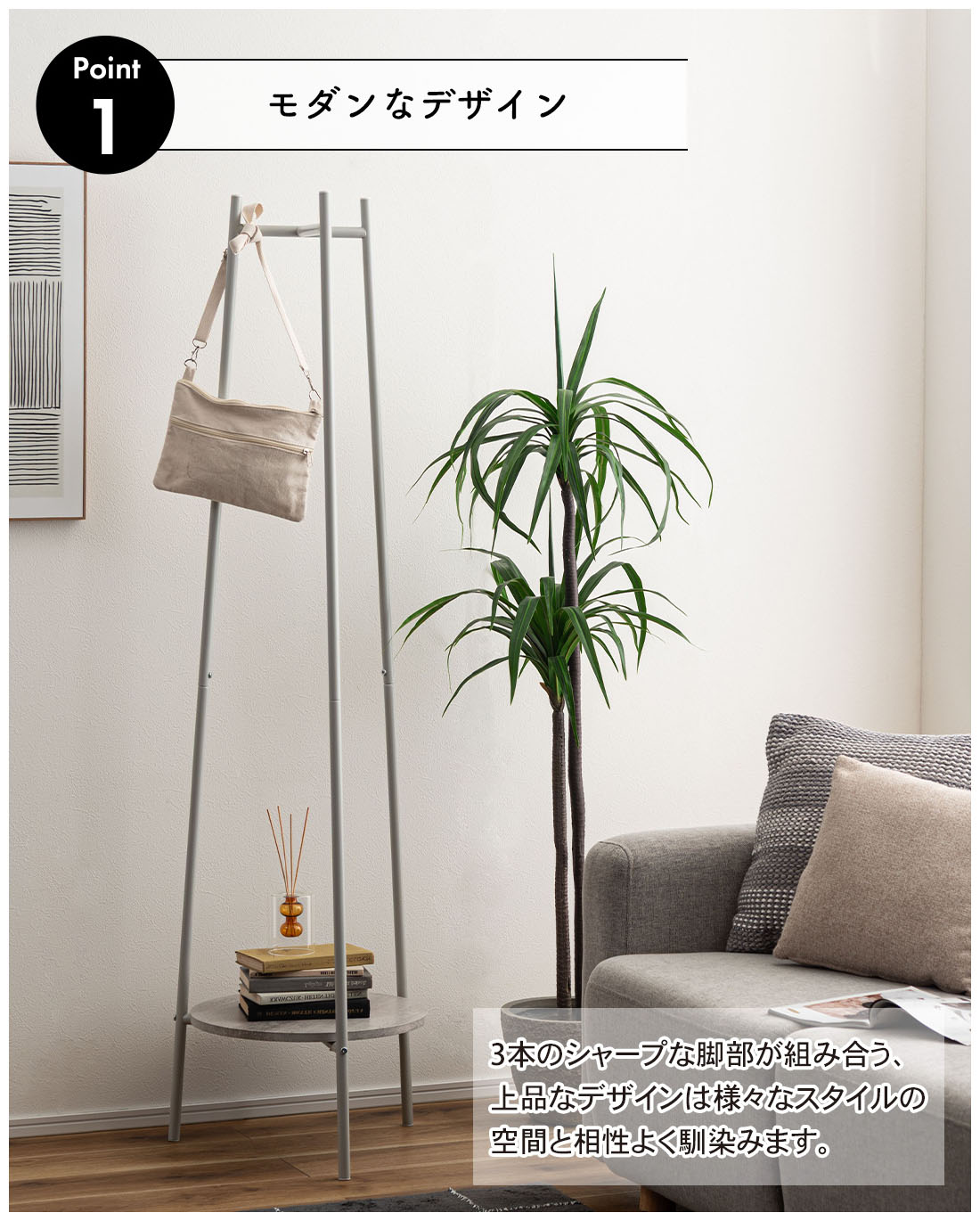 3本のスチール脚で支えるミニマルな構造が特徴のハンガー。