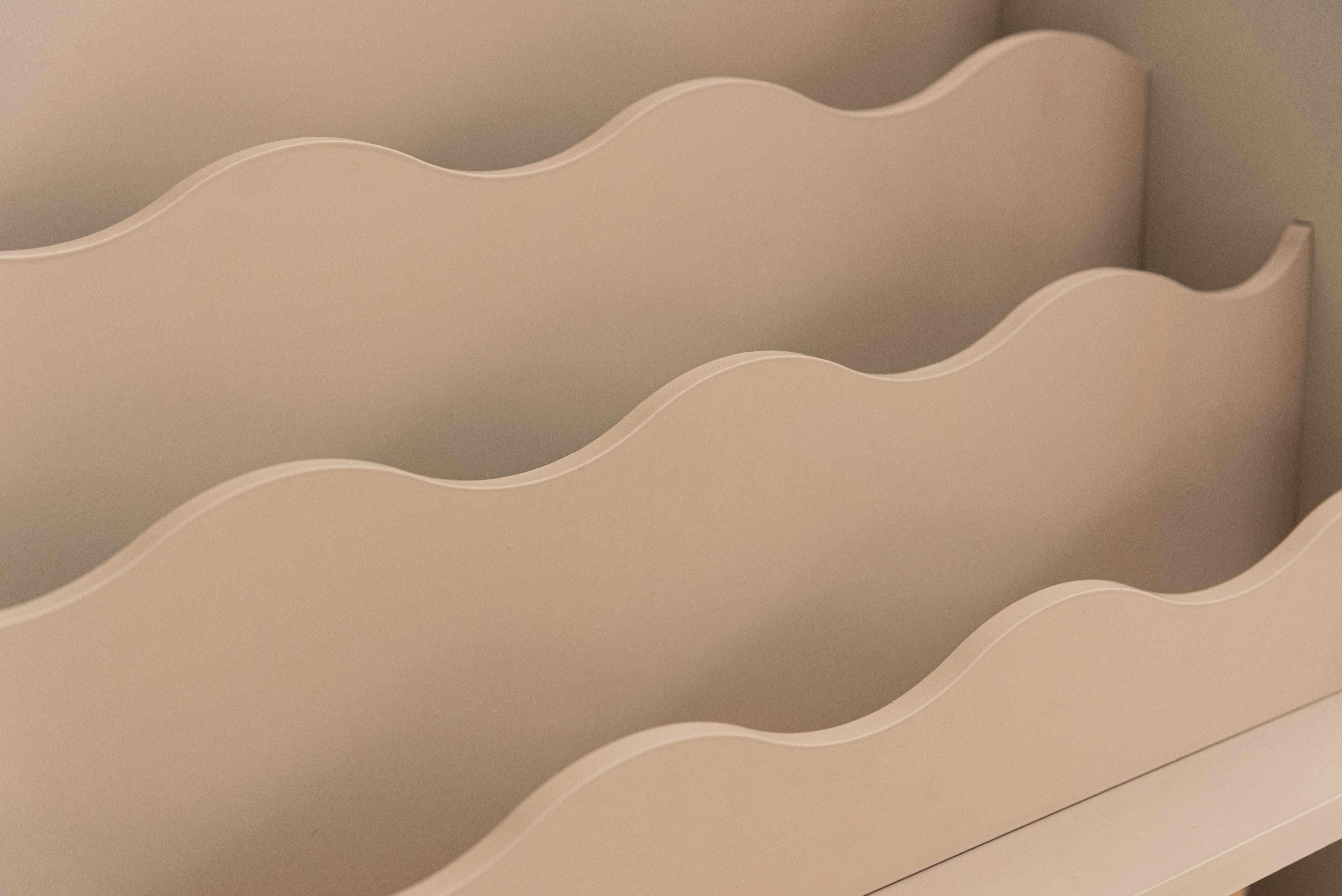 波打つような優しいウェーブデザインが、お部屋に柔らかなリズムを生み出すブックシェルフ。