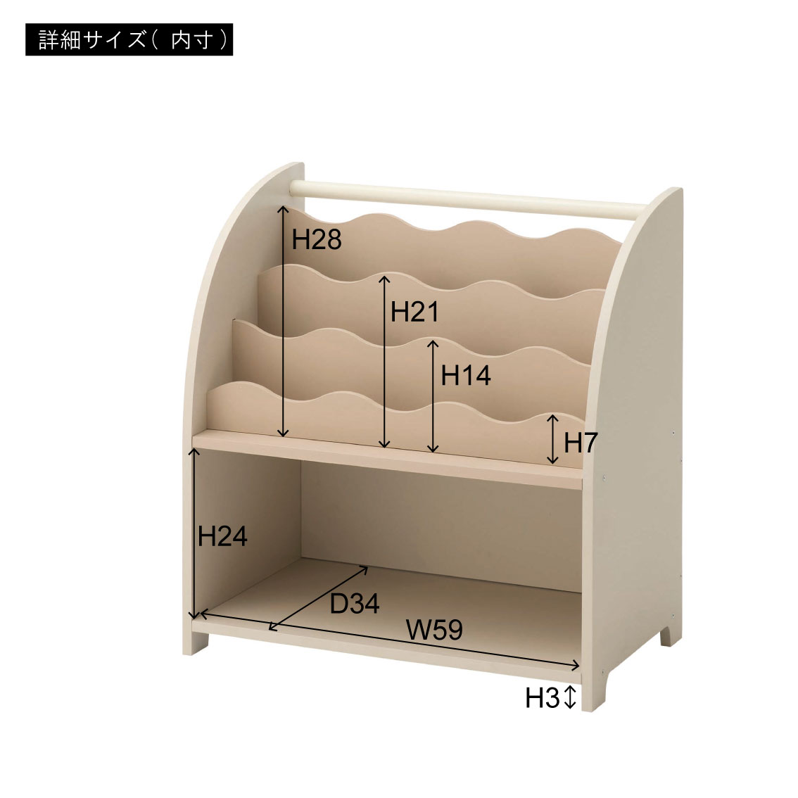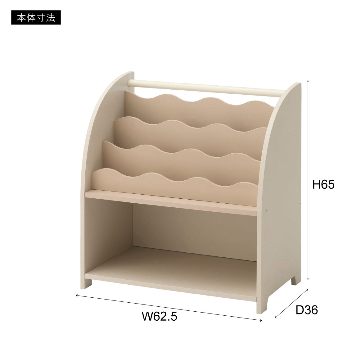 おもちゃも入るウェーブブックシェルフ(ベージュ)