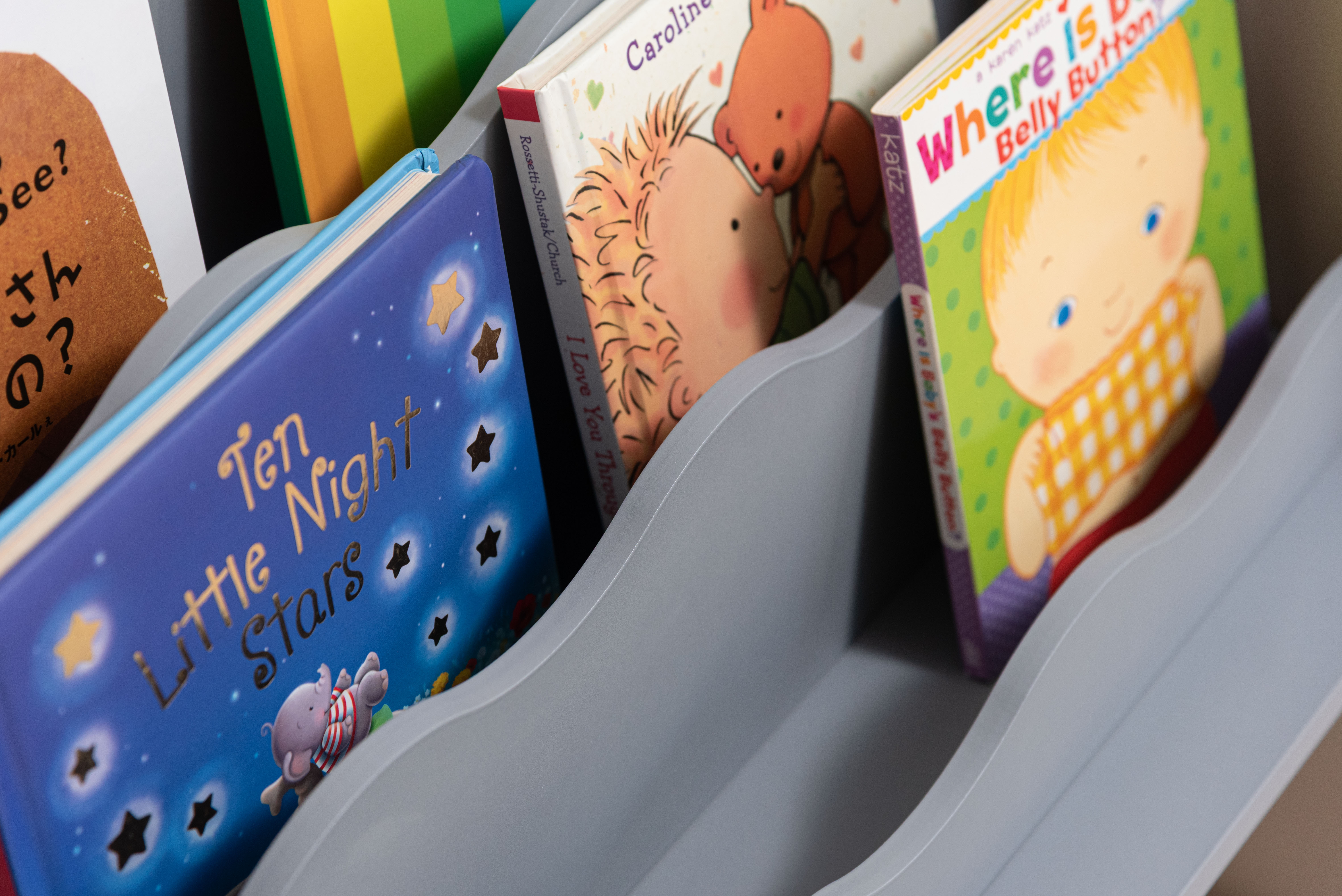 おもちゃも入るウェーブブックシェルフ(グレー)