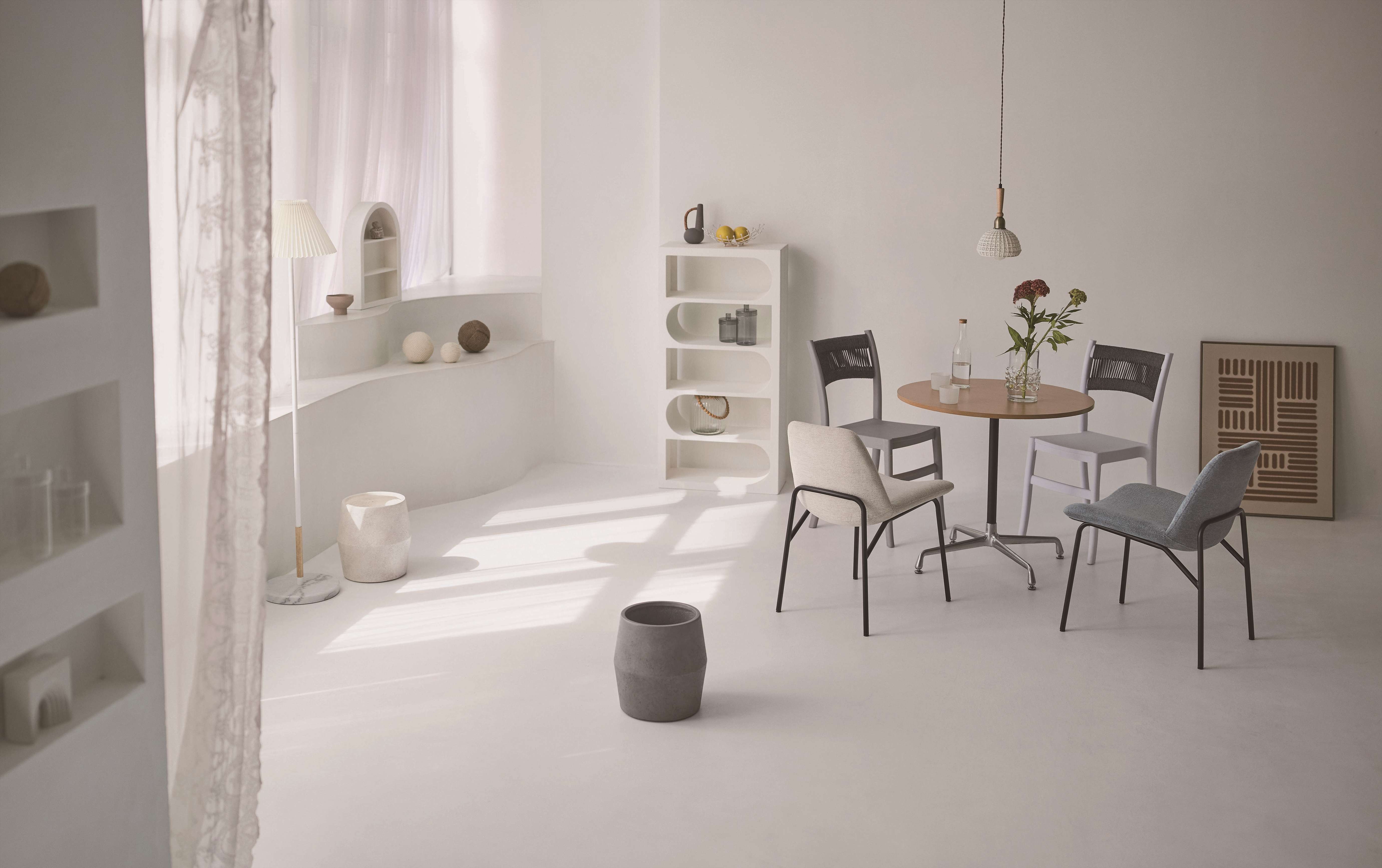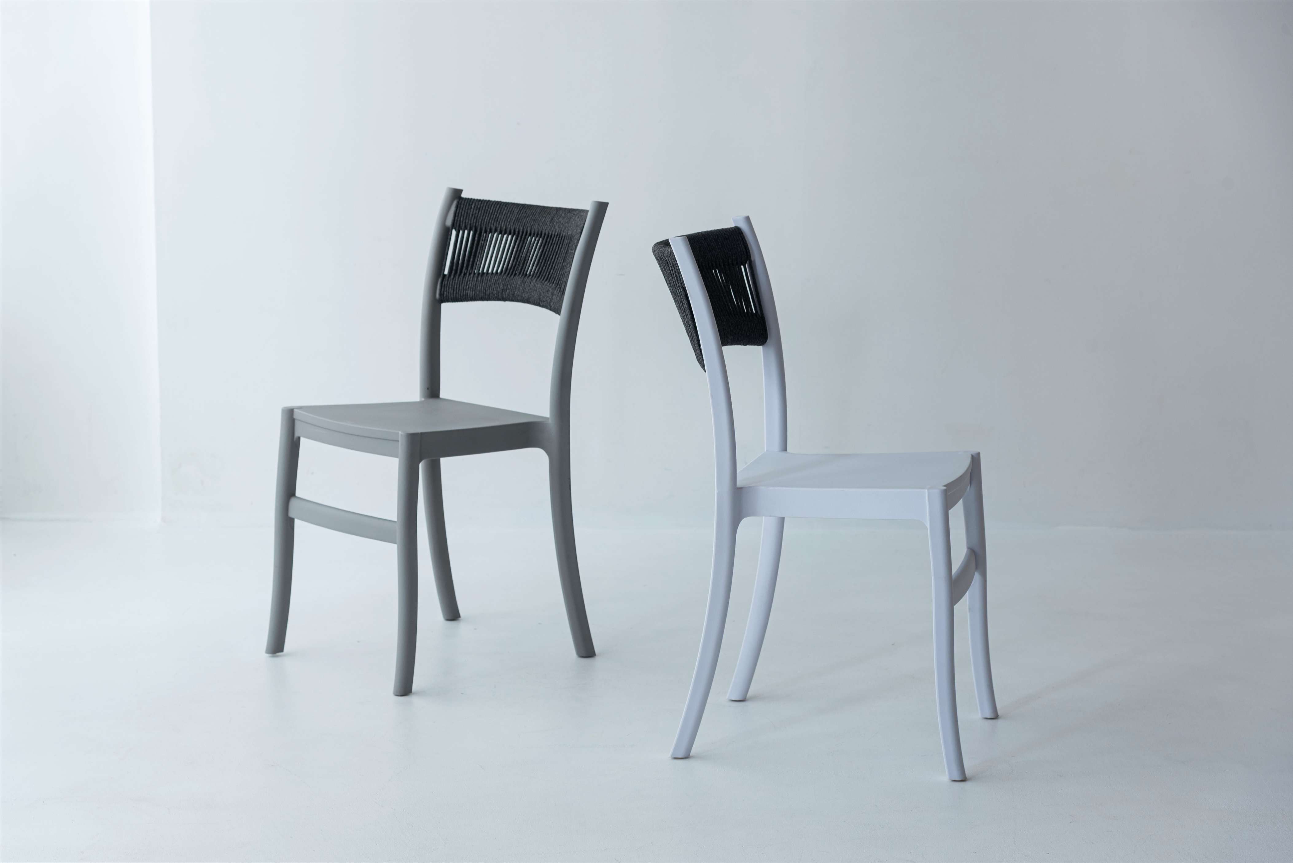 使いやすい2色展開で、フレームの滑らかな曲線に編み込み仕様の背もたれがマッチ。