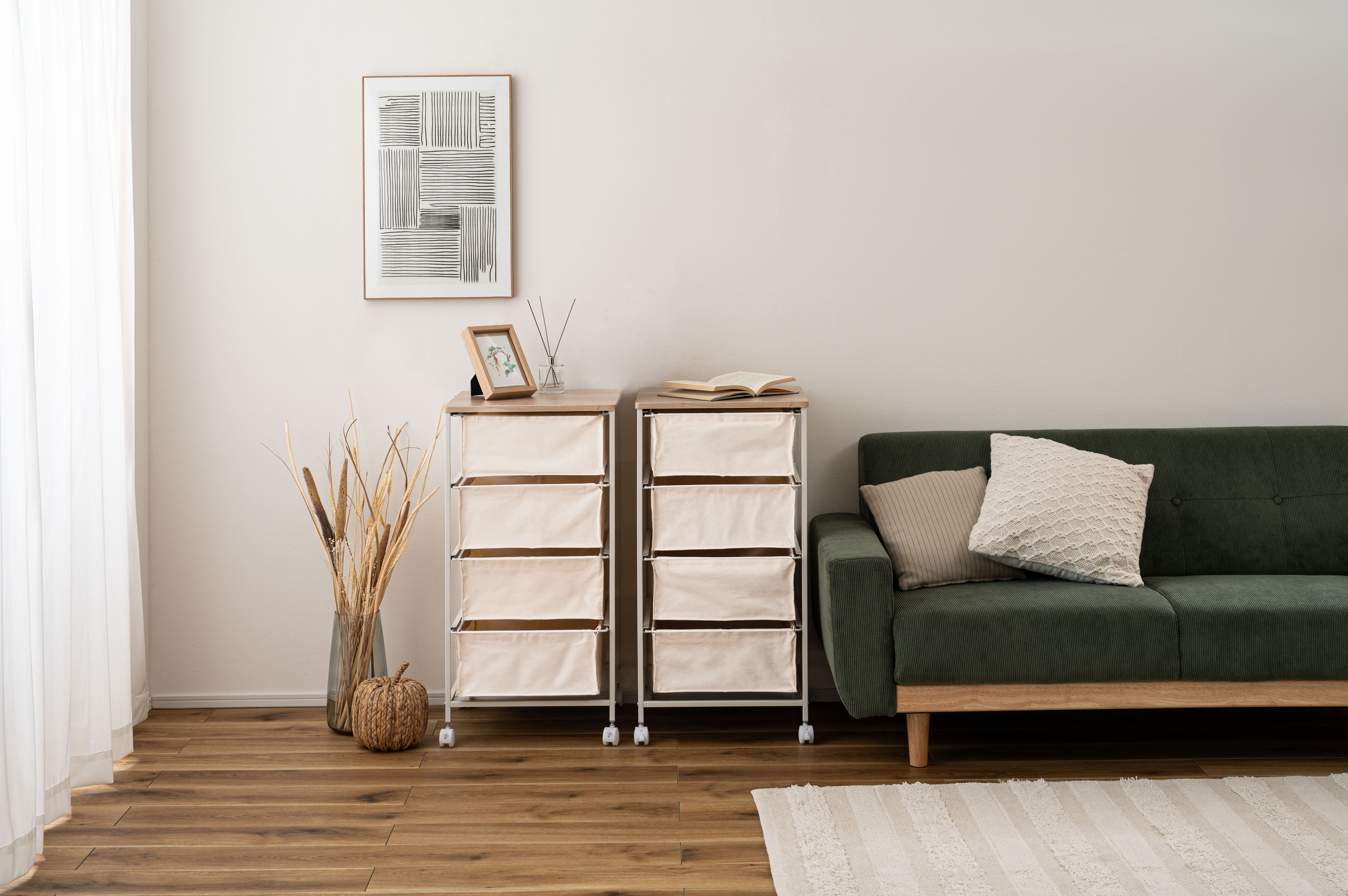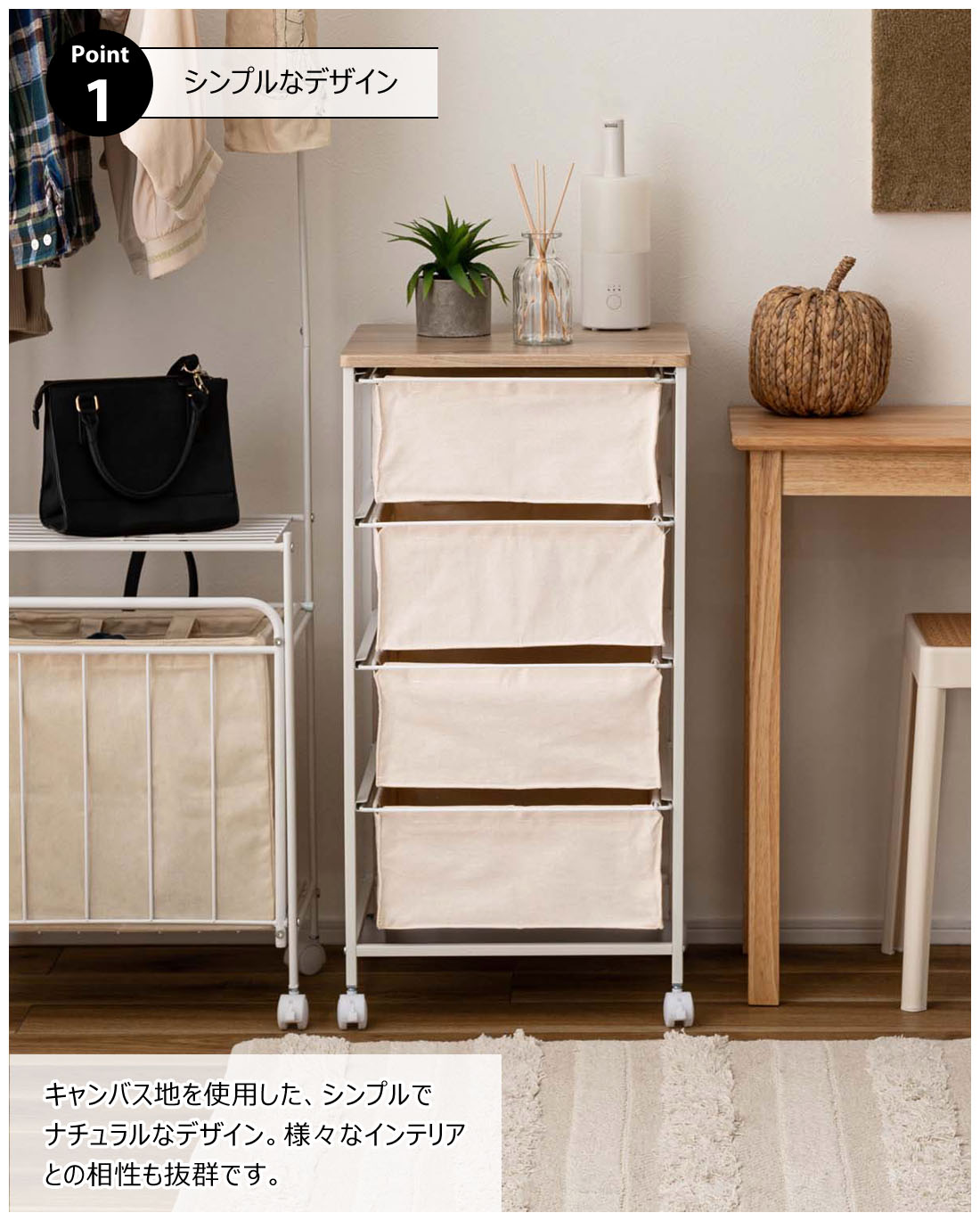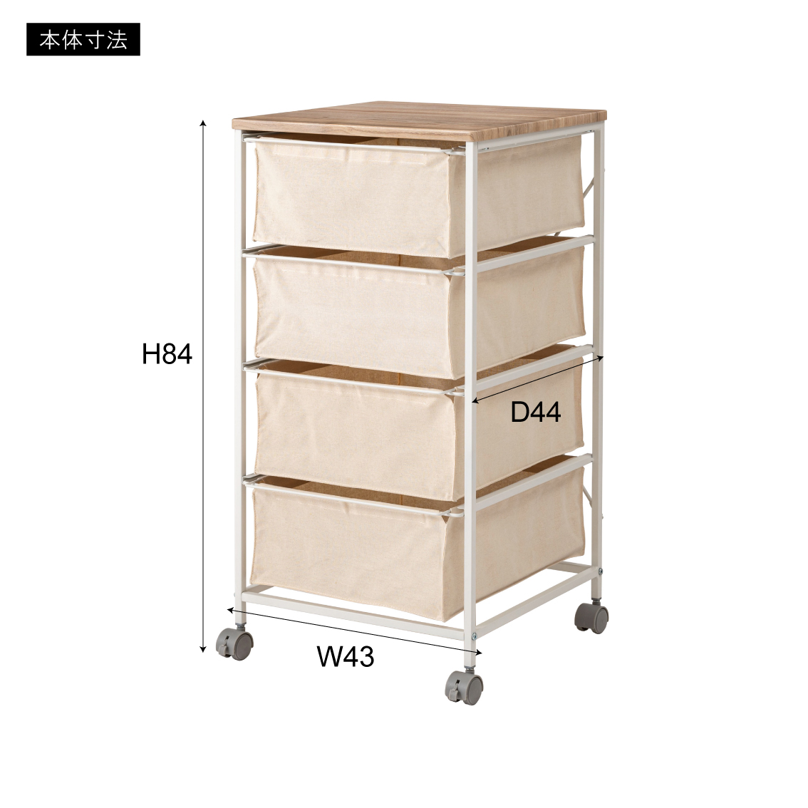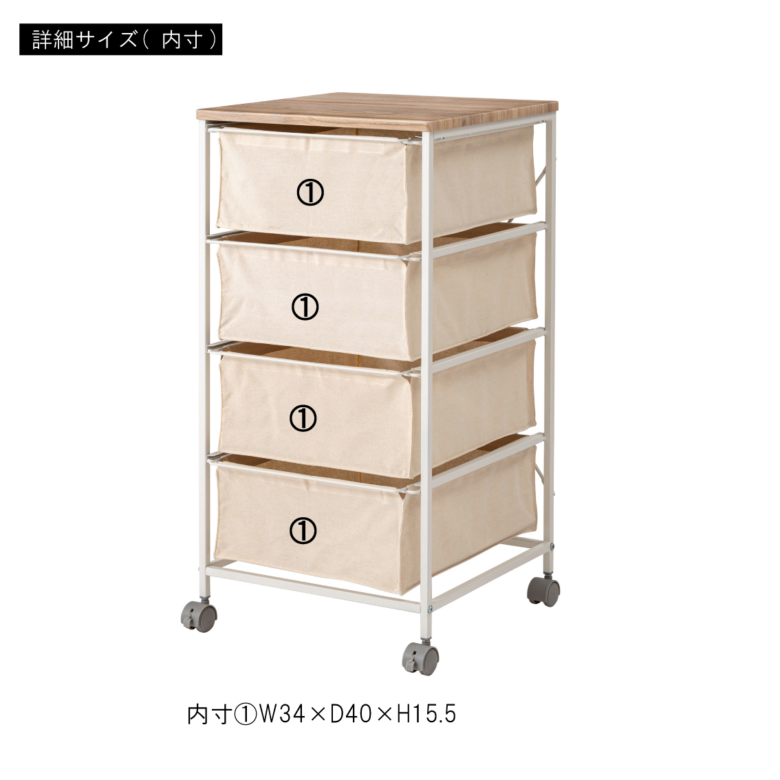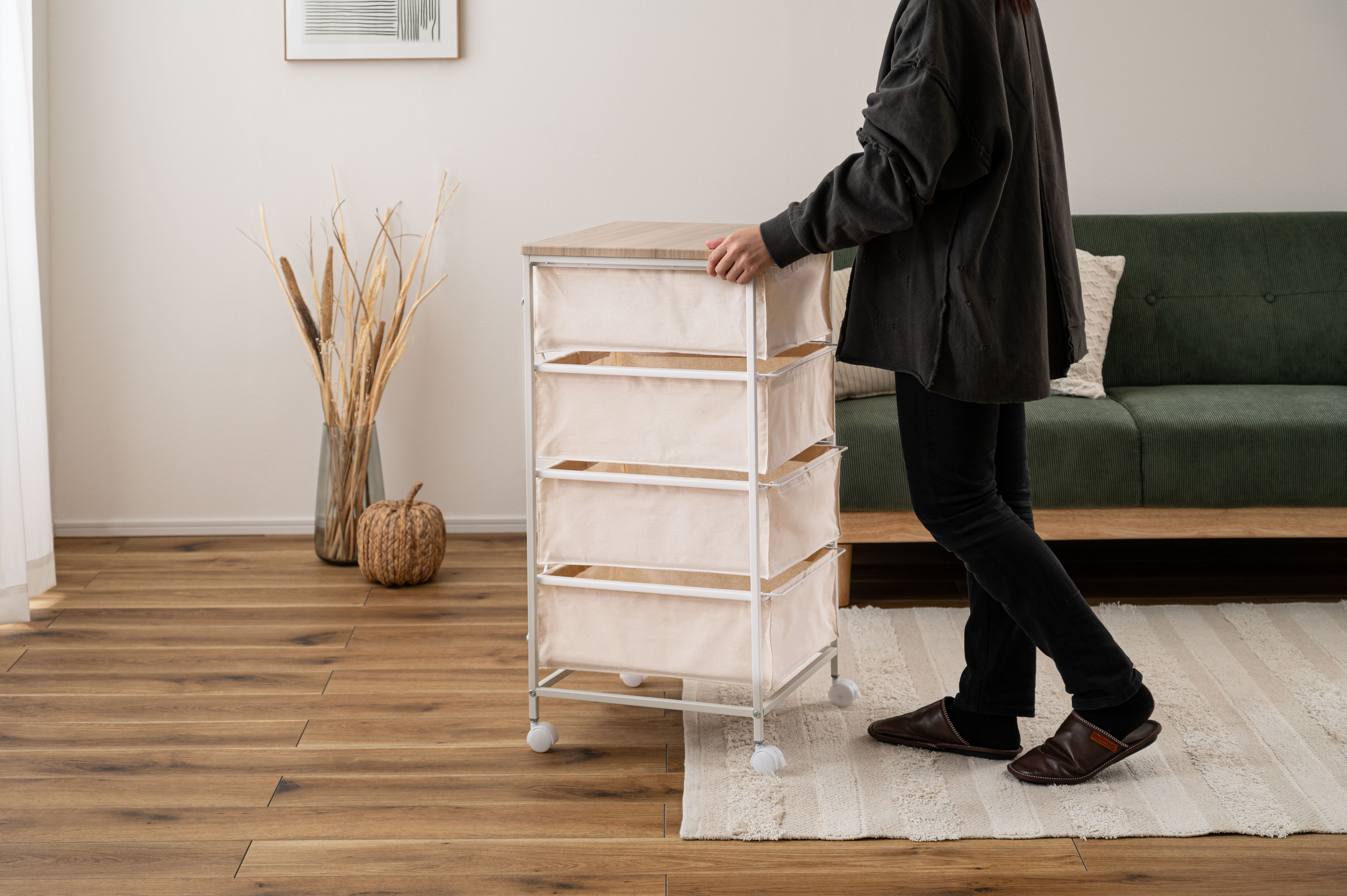 キャスター付きキャンバスチェスト4段(ホワイト)