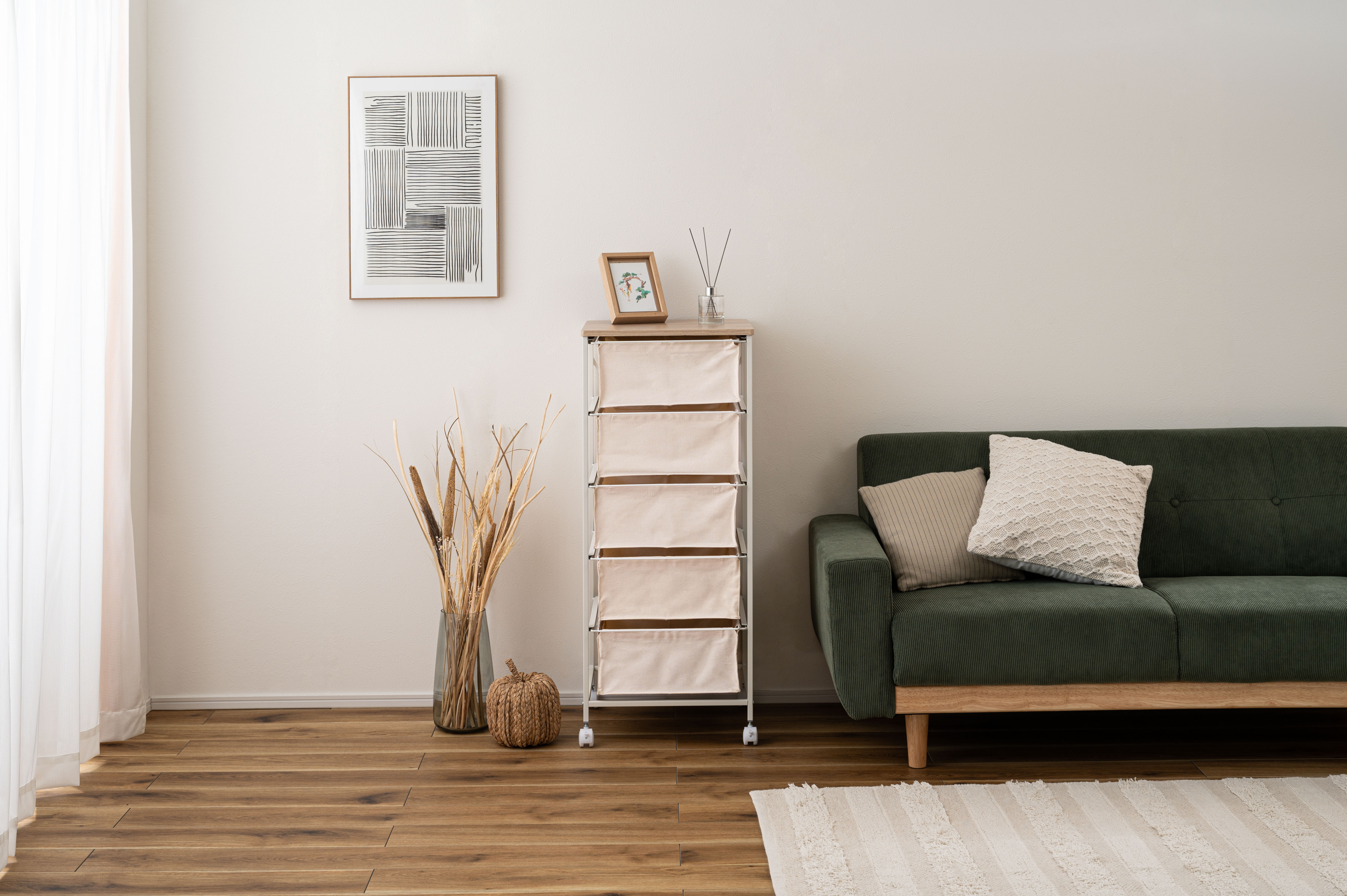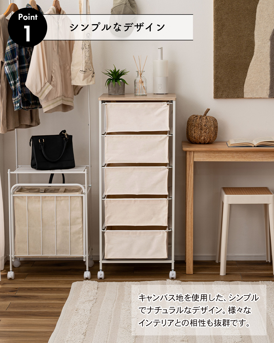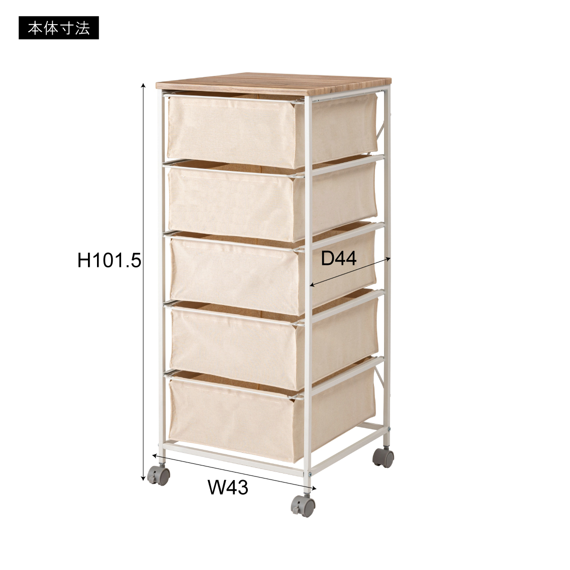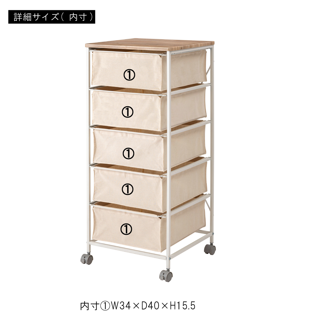 キャスター付きキャンバスチェスト5段(ホワイト)