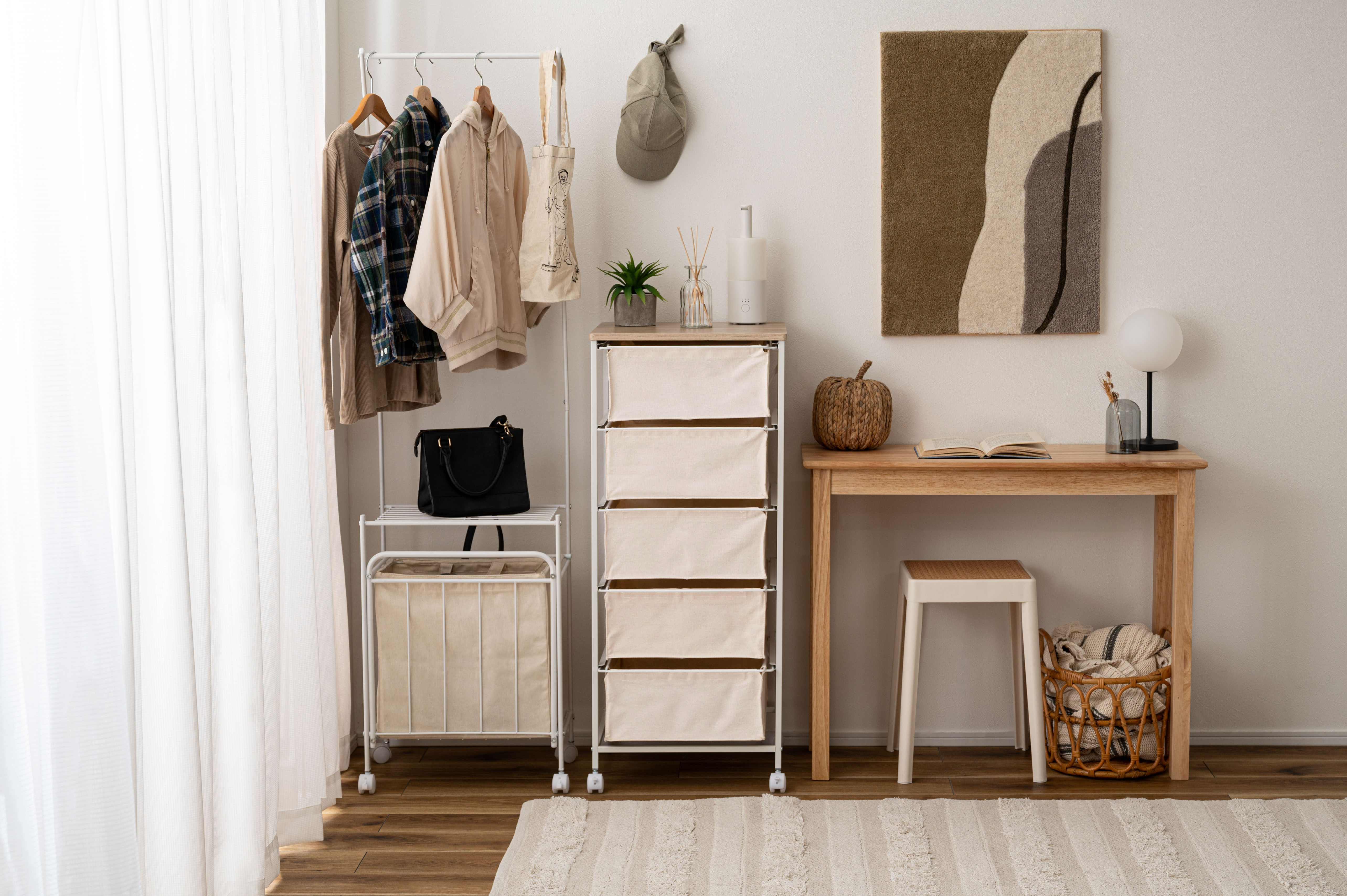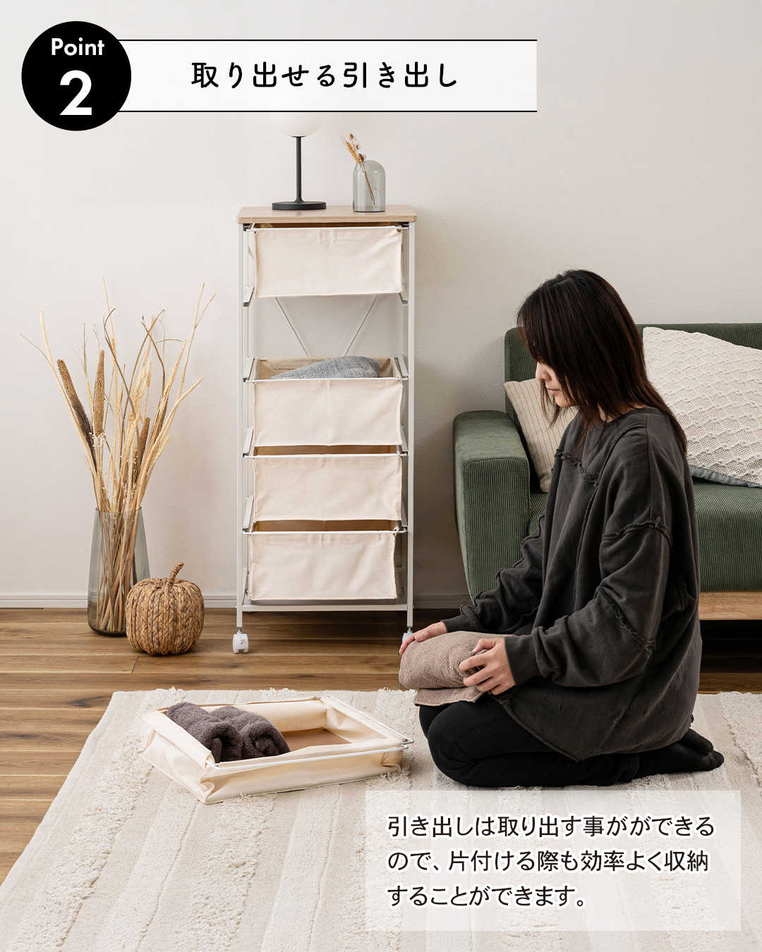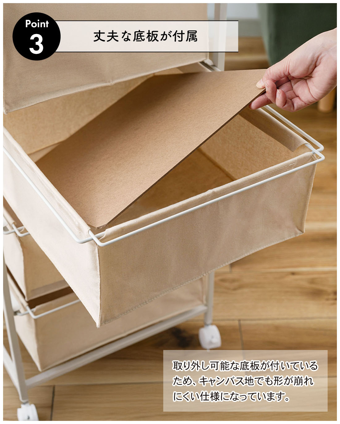 引き出しの底面には丈夫で取り出し可能なMDF板付き。キャンバス地でも形が崩れにくい仕様になっています。