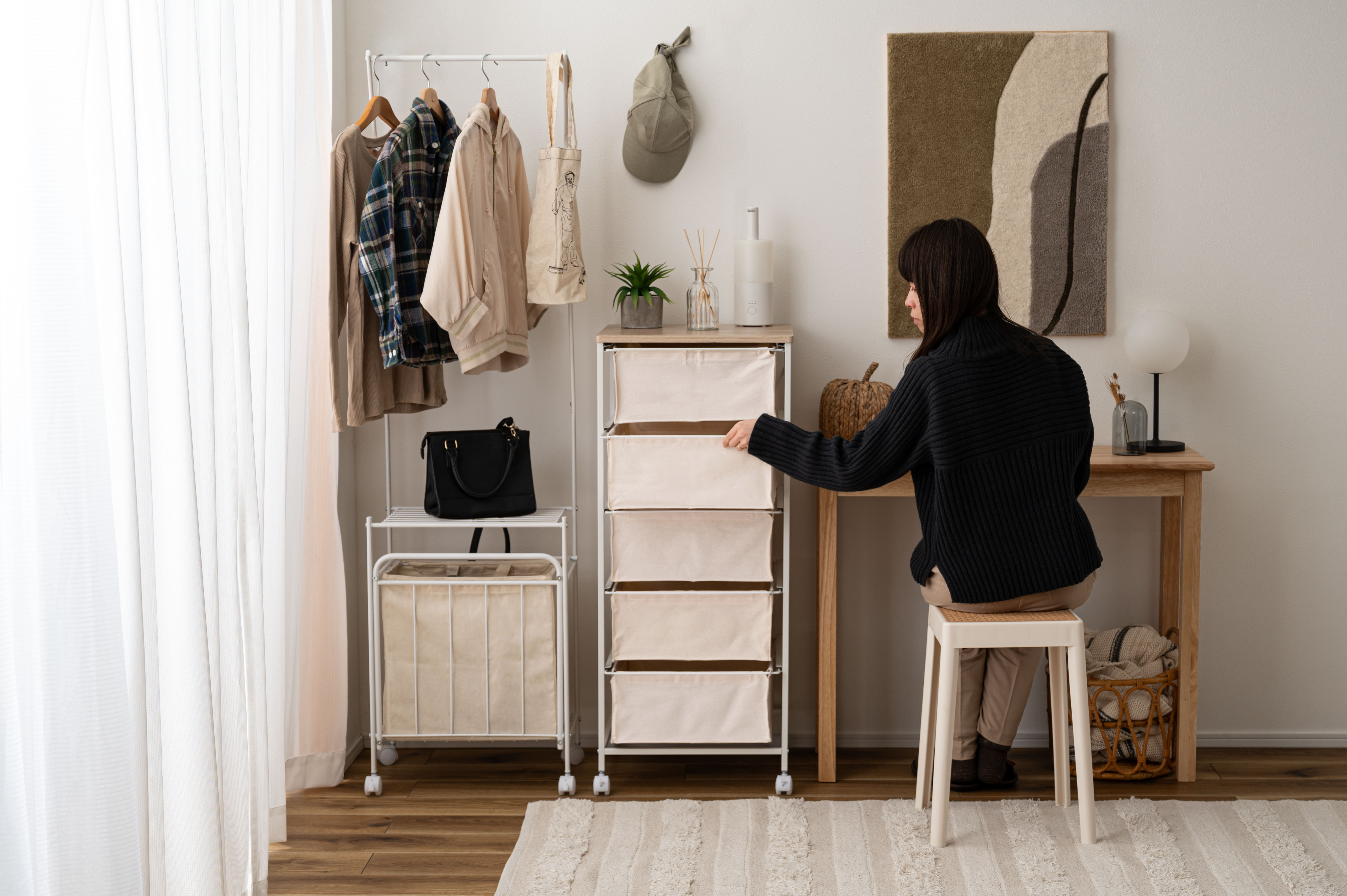 キャスターが付きでラクラク移動ができ、すぐに組み立てて使える簡単組立式。