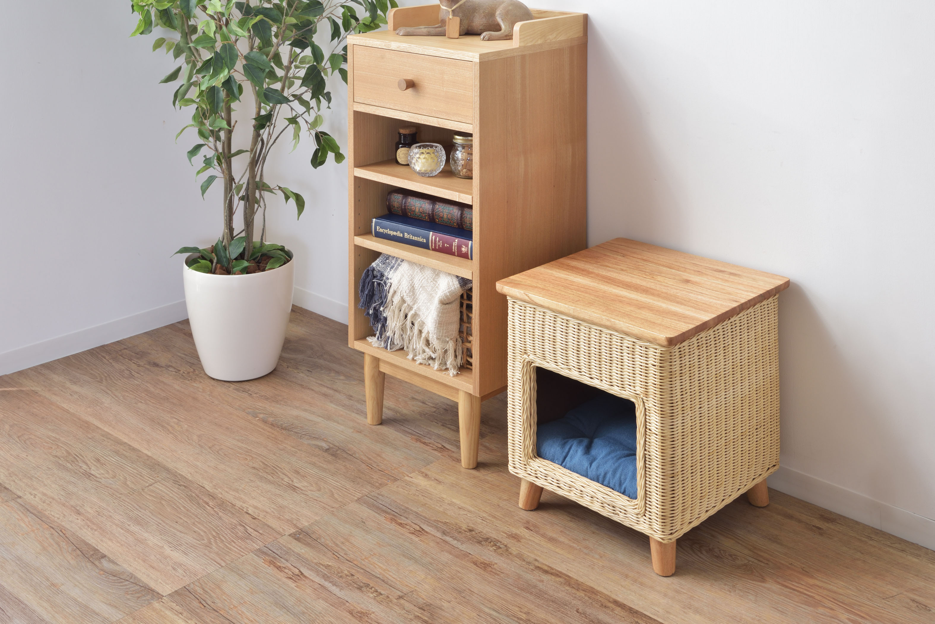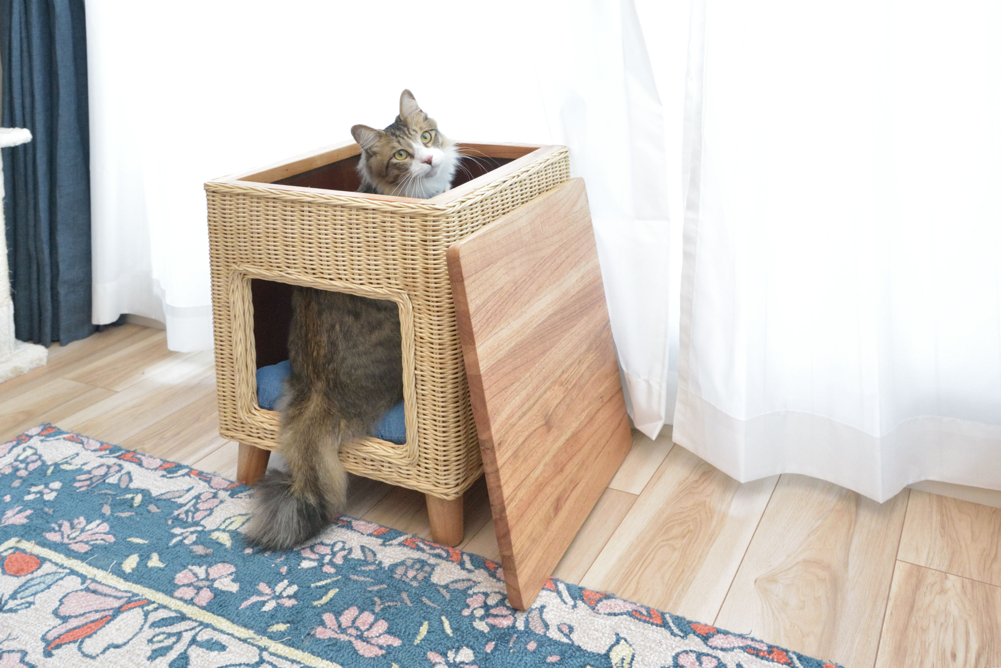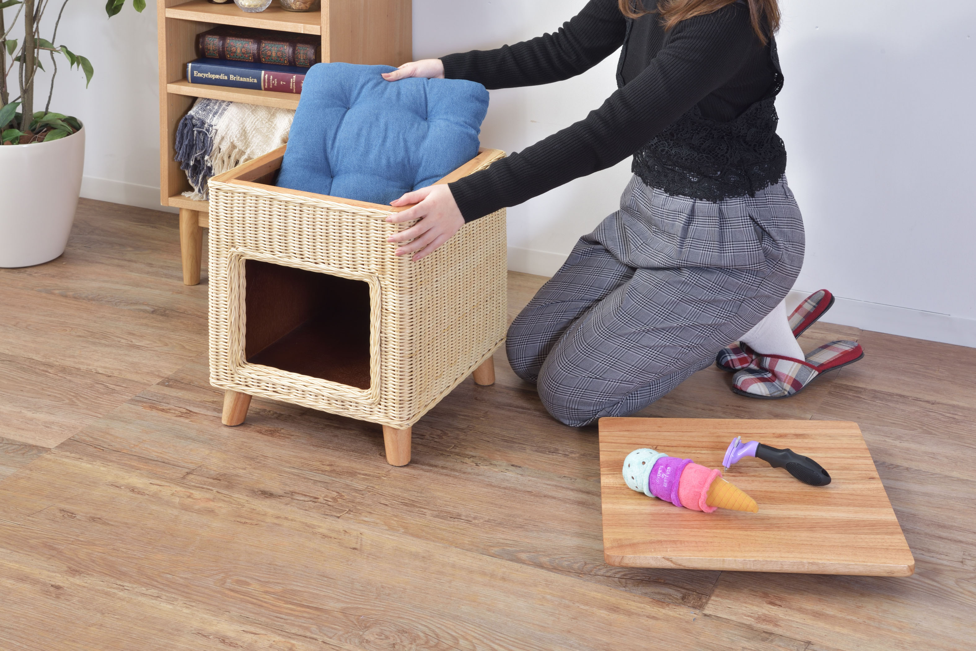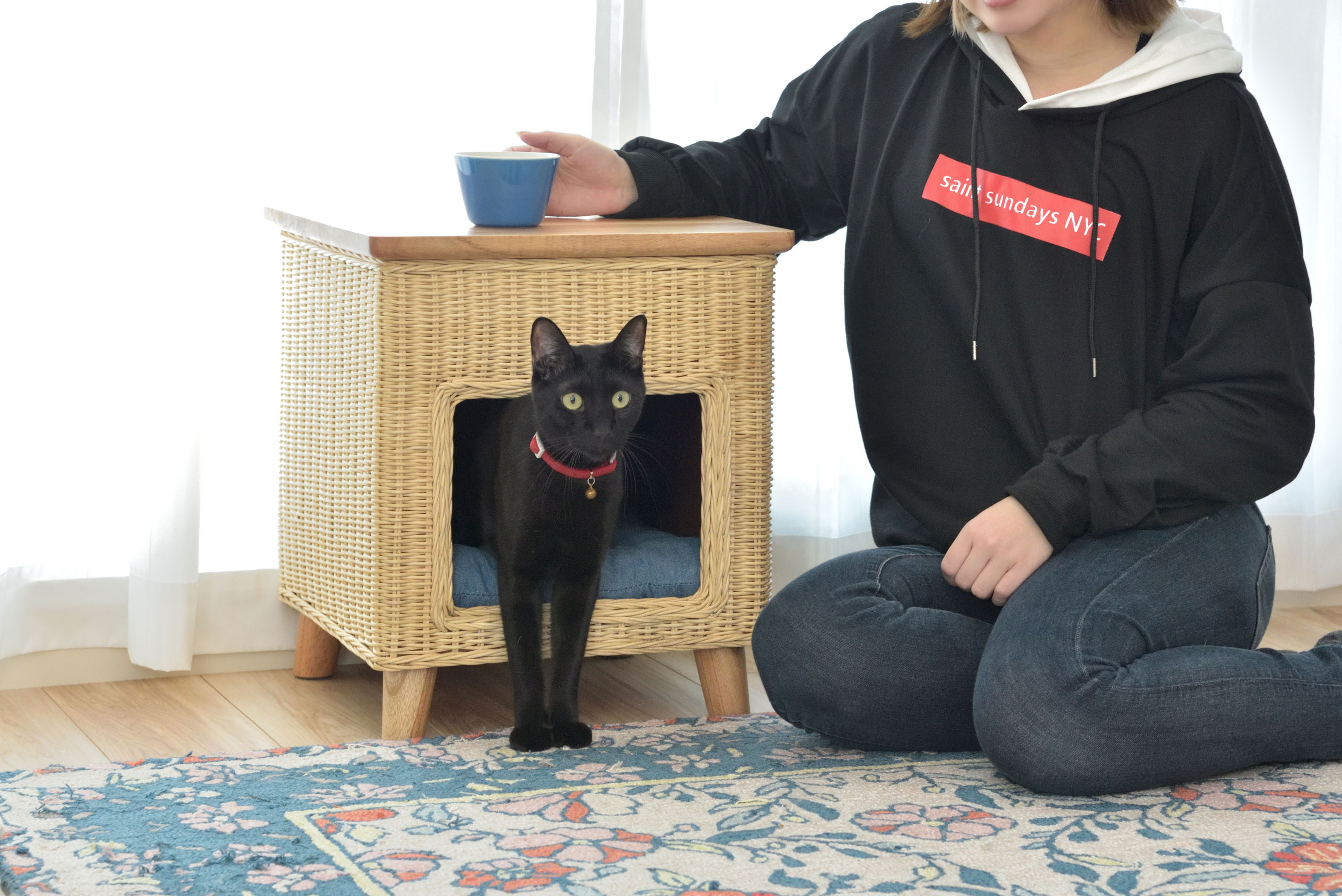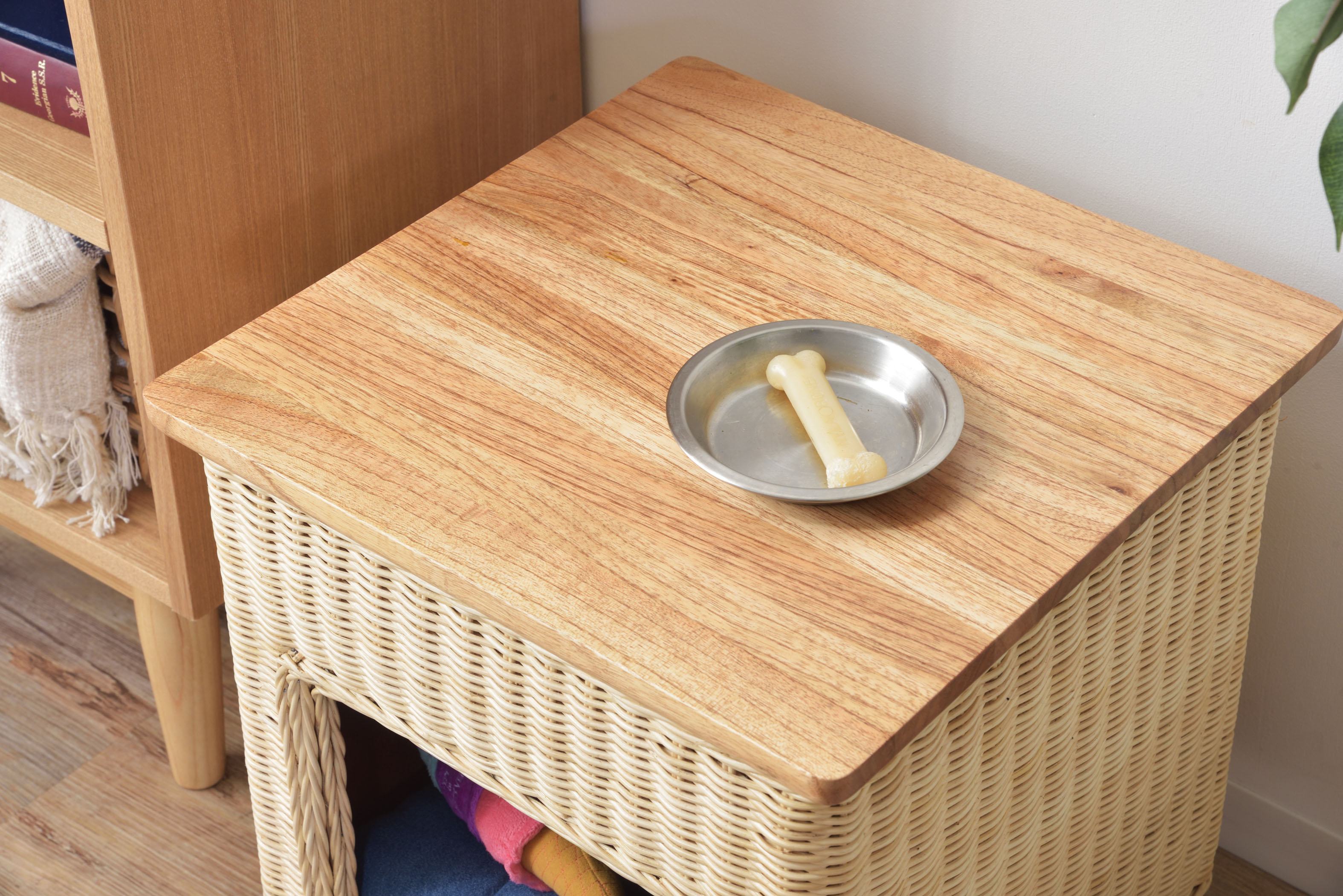 スツールとしてはもちろん、テーブルとしても使用できる3Wayなペットハウスです。